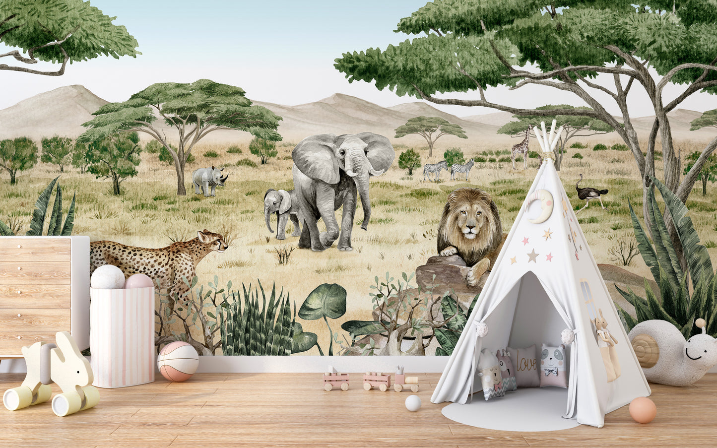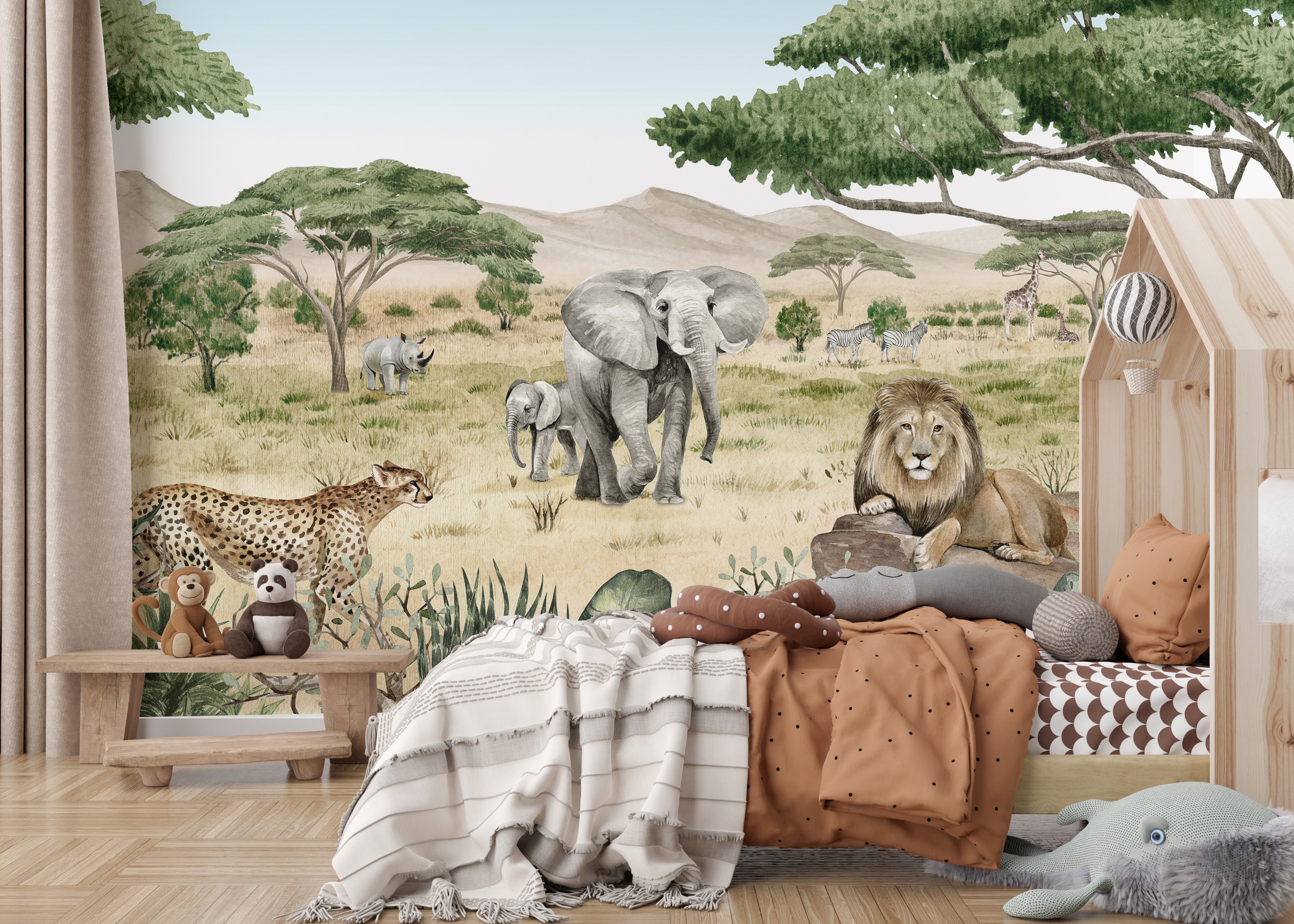 Wildlife-themed Savannah Secret mural wallpaper for decor