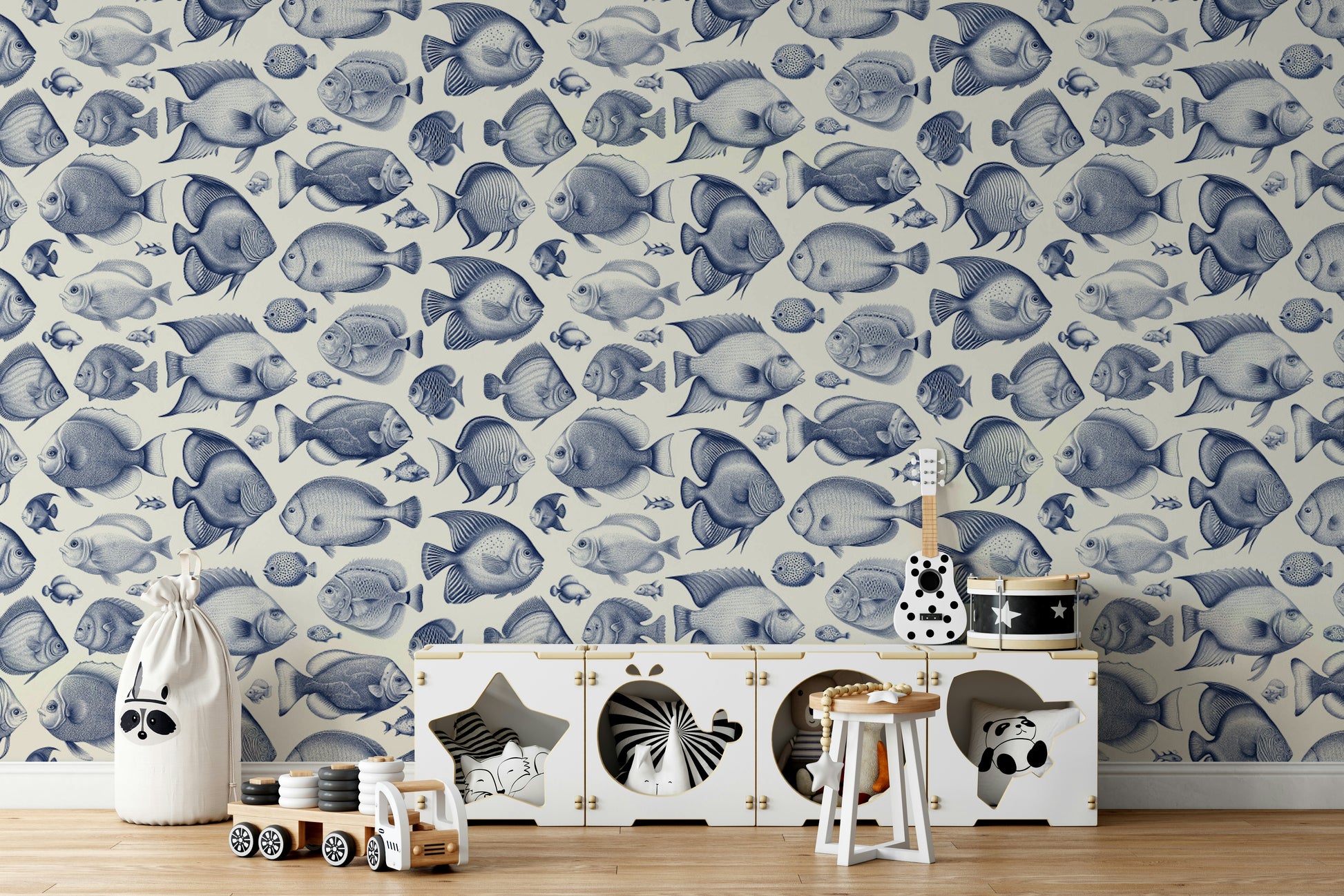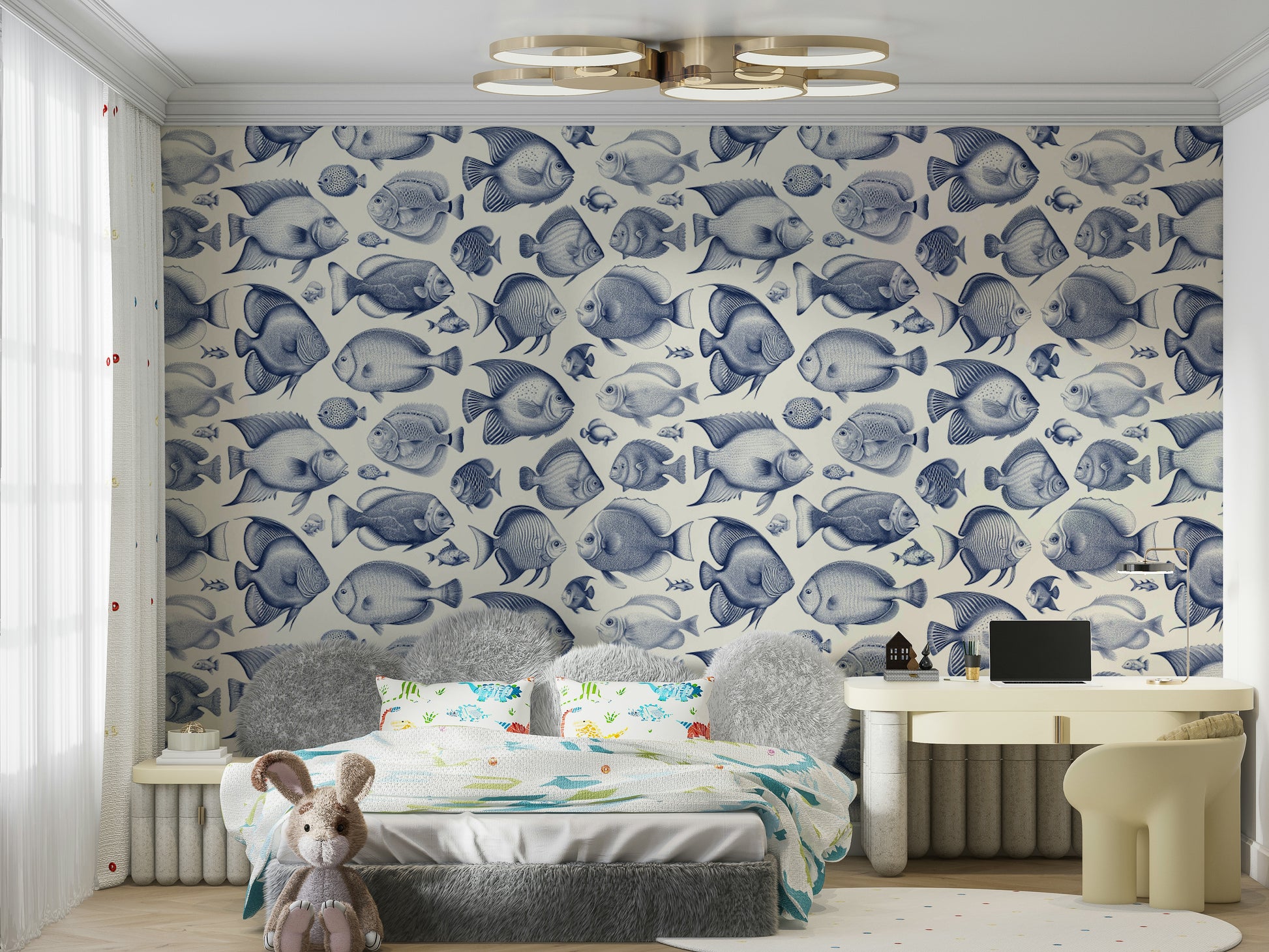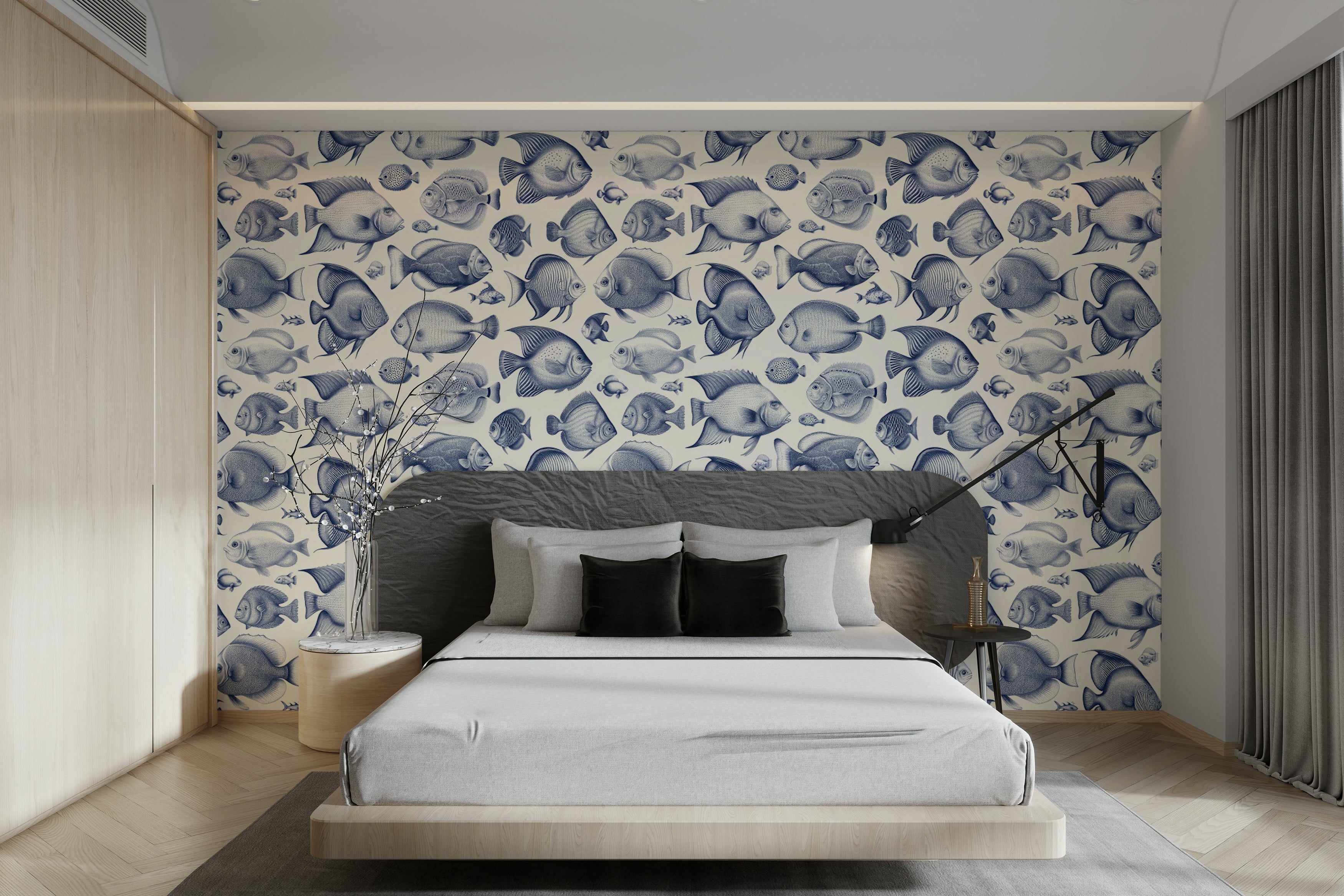 School of Uncanny Fish - Delft Blue Wallpaper⁠