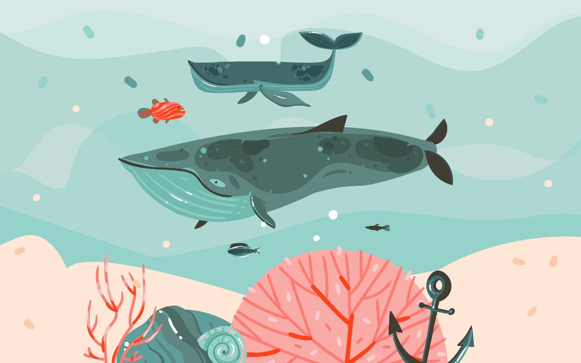 Whale Adventure Underwater Wallpaper Mural for Kids - Giffywalls