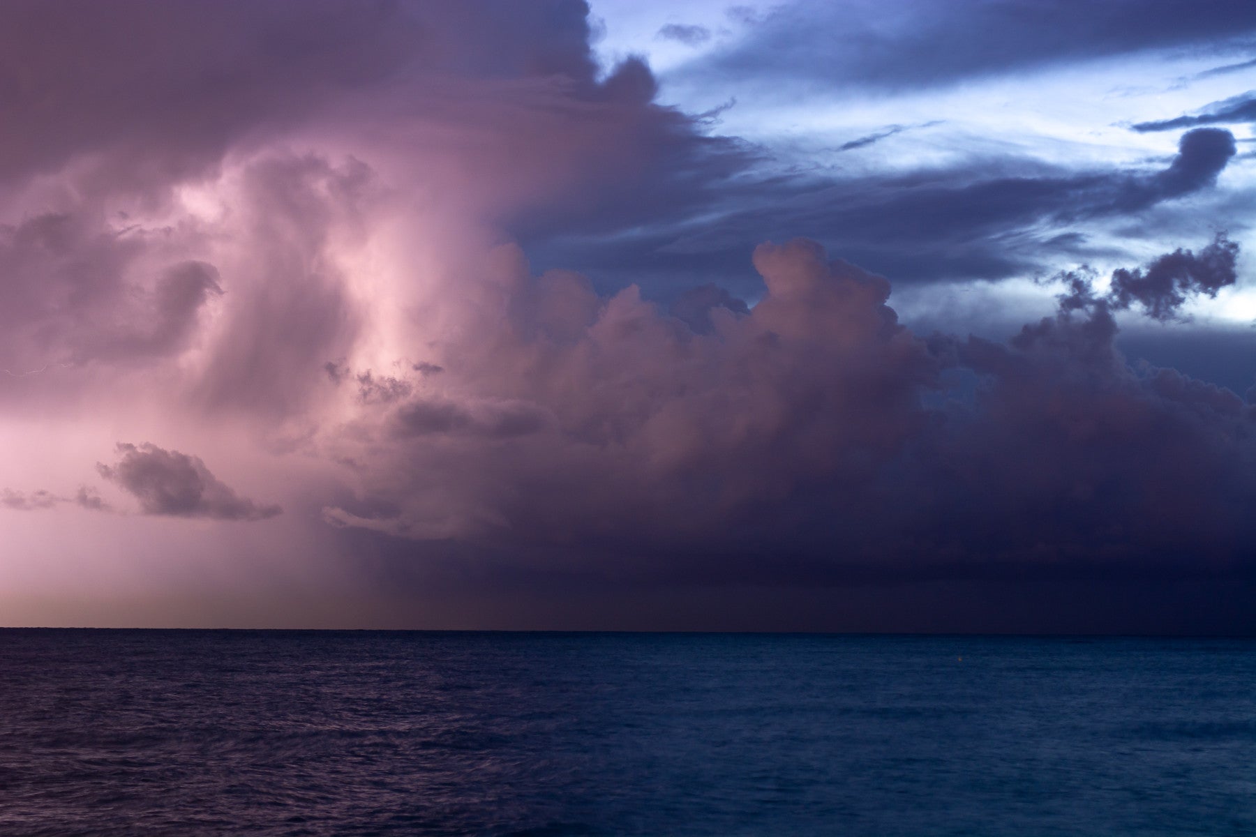 Witness the raw power and ethereal beauty of the ocean with Seaside #15. This stunning wallpaper captures a dramatic seascape where a brewing storm clashes with the serene horizon. Towering, majestic clouds, painted in hues of deep purple and pale lavender, dominate the sky, creating a mesmerizing spectacle. A subtle flash of lightning hints at the tempest's energy, while the vast expanse of the sea mirrors the sky's captivating palette. This image evokes a sense of awe and wonder, perfect for those who appreciate nature's untamed spirit. Let "Seaside #15" transform your screen into a window onto a world of dramatic beauty and tranquility.