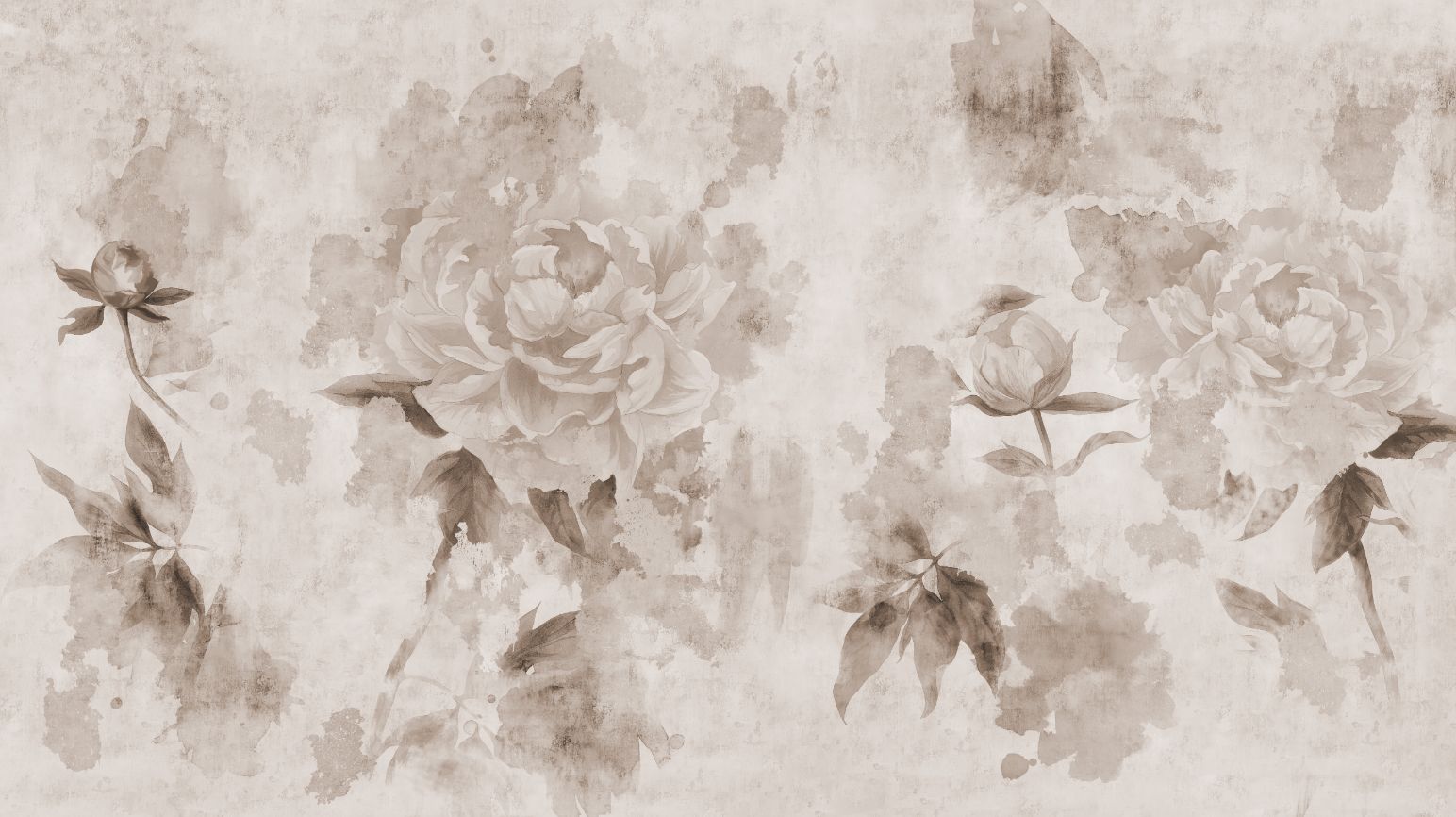 Introducing the sepia peonies flowers painted concrete mural wallpaper a seamless blend of elegance and contemporary design for your bedroom. This unique wallpaper harmoniously combines the natural beauty of peonies with the urban texture of concrete, presented in soothing sepia tones.
