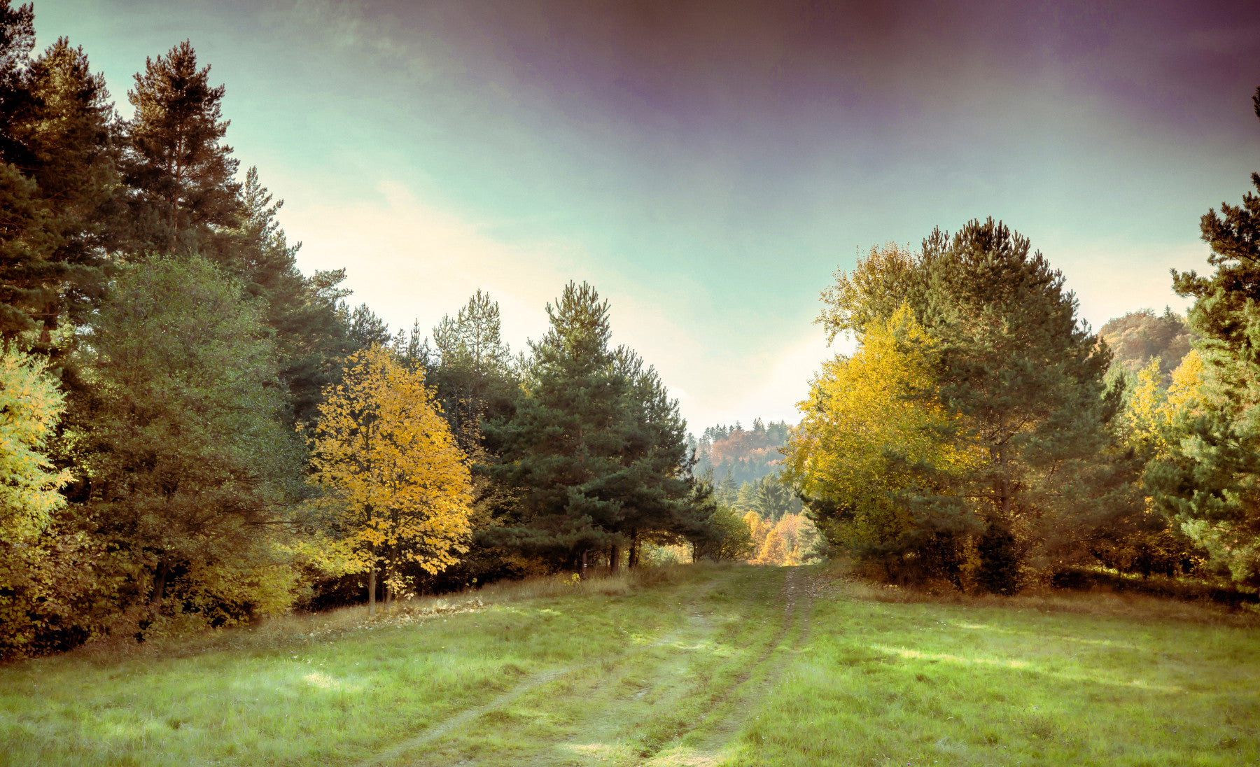This stunning photograph presents a tranquil forest pathway, inviting viewers to explore the beauty of autumn. The vibrant hues of yellow and green trees contrast beautifully against the soft sky, creating a peaceful atmosphere. Perfect for adding a touch of nature to your home or office, this artwork embodies the calmness of a serene landscape. Enhance your space with this captivating piece that speaks to the beauty of the changing seasons.