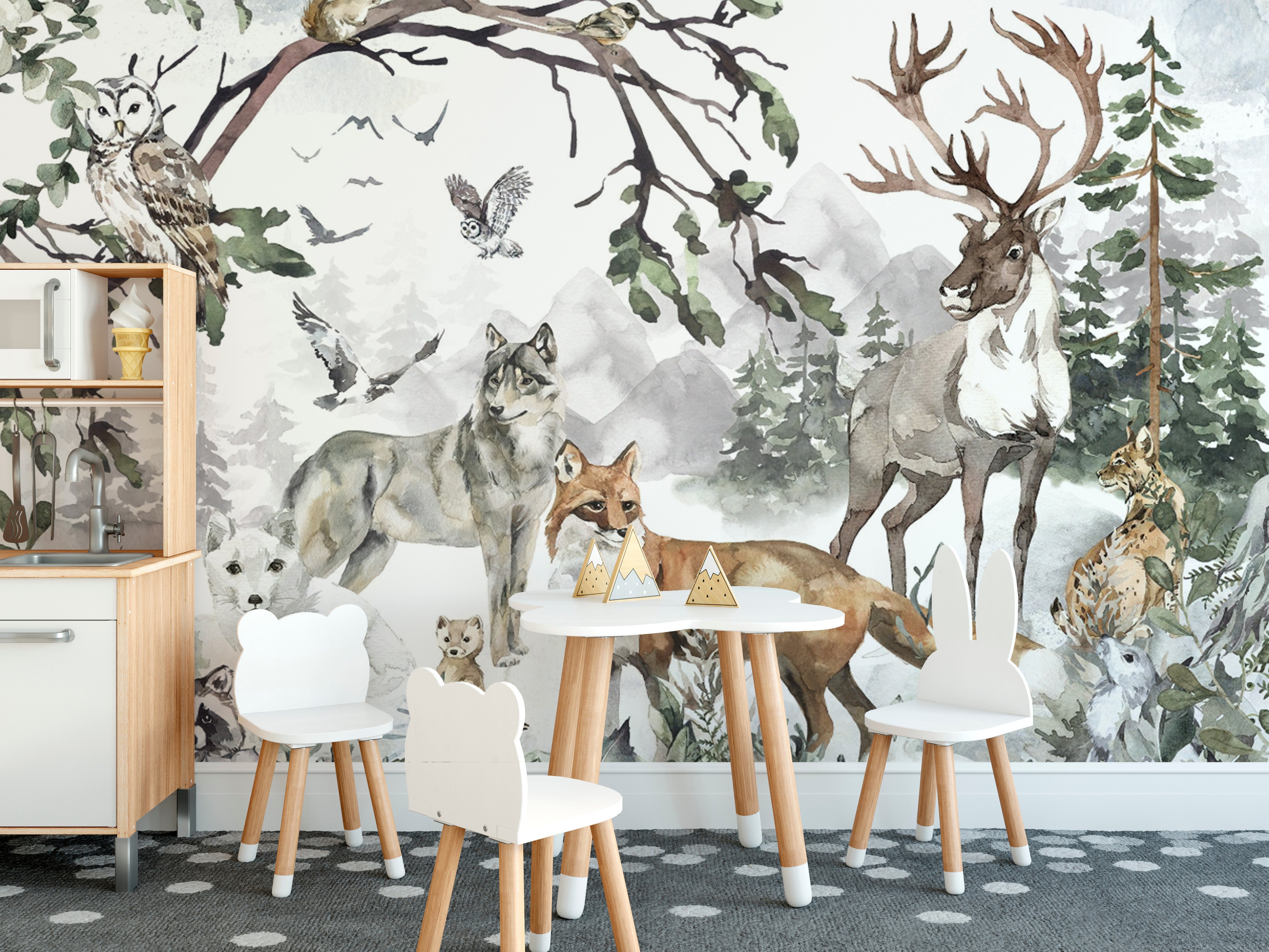 Watercolor Woodland Animal Wall Mural