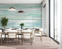 This captivating wallpaper for walls transforms any room into a tranquil retreat. Its fluid design showcases soft, horizontal brushstrokes, creating a serene, painterly aesthetic. A harmonious palette blends gentle aqua, mint green, and muted grey tones, evoking a sense of calm and openness. The subtle layering of colours gives the impression of a misty horizon or a peaceful waterscape, adding depth and a feeling of expansiveness. This versatile pattern complements modern, Scandinavian, or coastal-inspired interiors. Install it in a living room for a refreshing accent, a bedroom for quiet serenity, or a bathroom to enhance a spa-like ambiance.