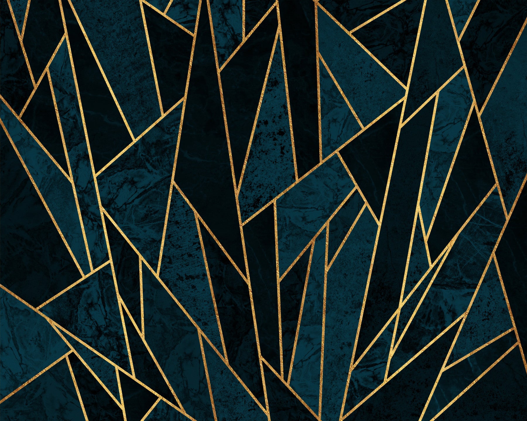 Immerse yourself in the opulent elegance of "Shattered Deep Blue Mosaic and Gold." This captivating wallpaper design features a mesmerizing arrangement of deep teal and black geometric shards, meticulously framed by shimmering gold lines. The textured marble-like effect adds depth and richness, creating a sophisticated and luxurious aesthetic. The interplay of sharp angles and rich color creates a dramatic yet balanced composition, perfect for adding a touch of modern art deco glamour to any space. This wallpaper exudes a sense of refined mystery and understated opulence, transforming your wall into a statement piece.