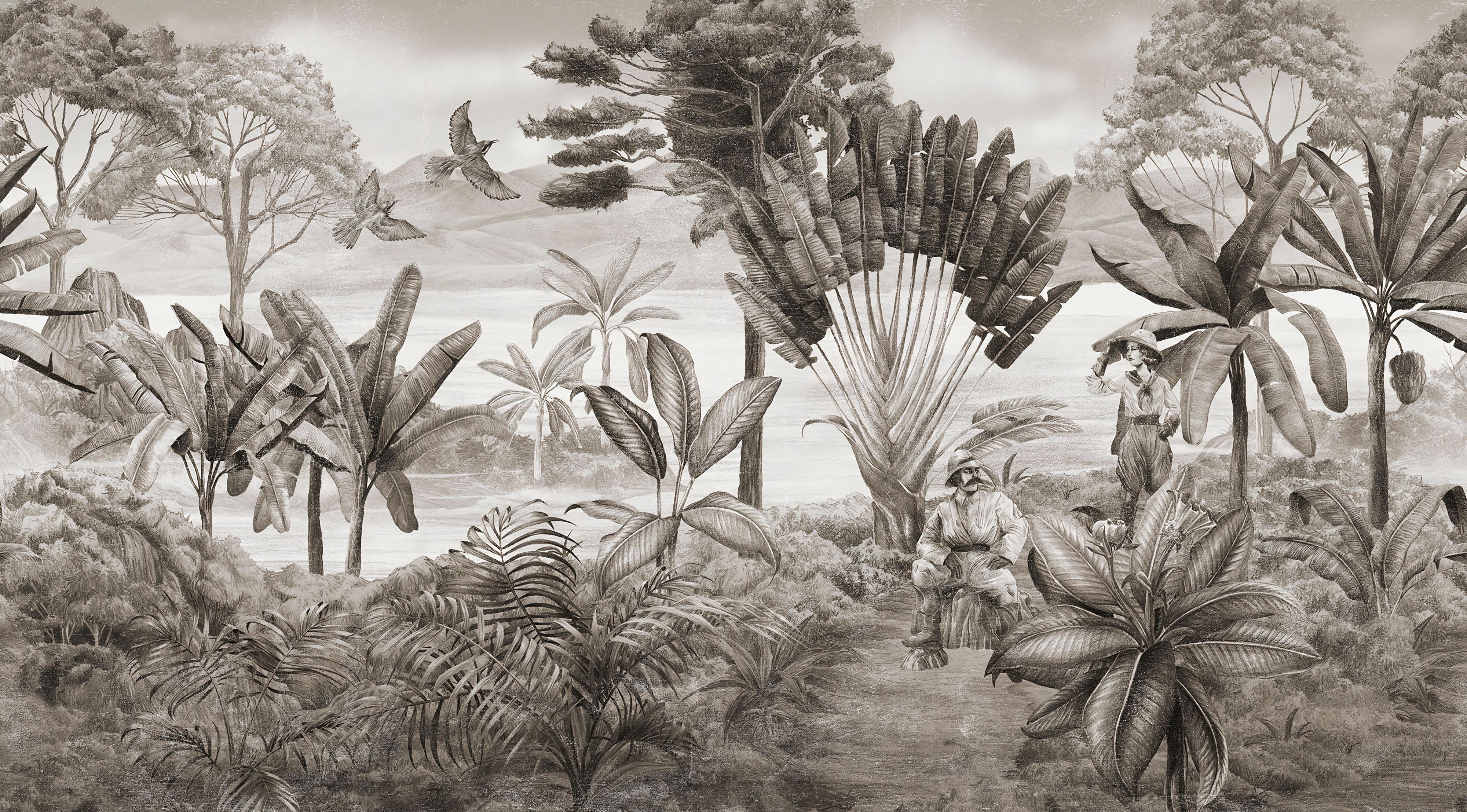 Shooter in a jungle wallpaper mural for dramatic wall designs.
