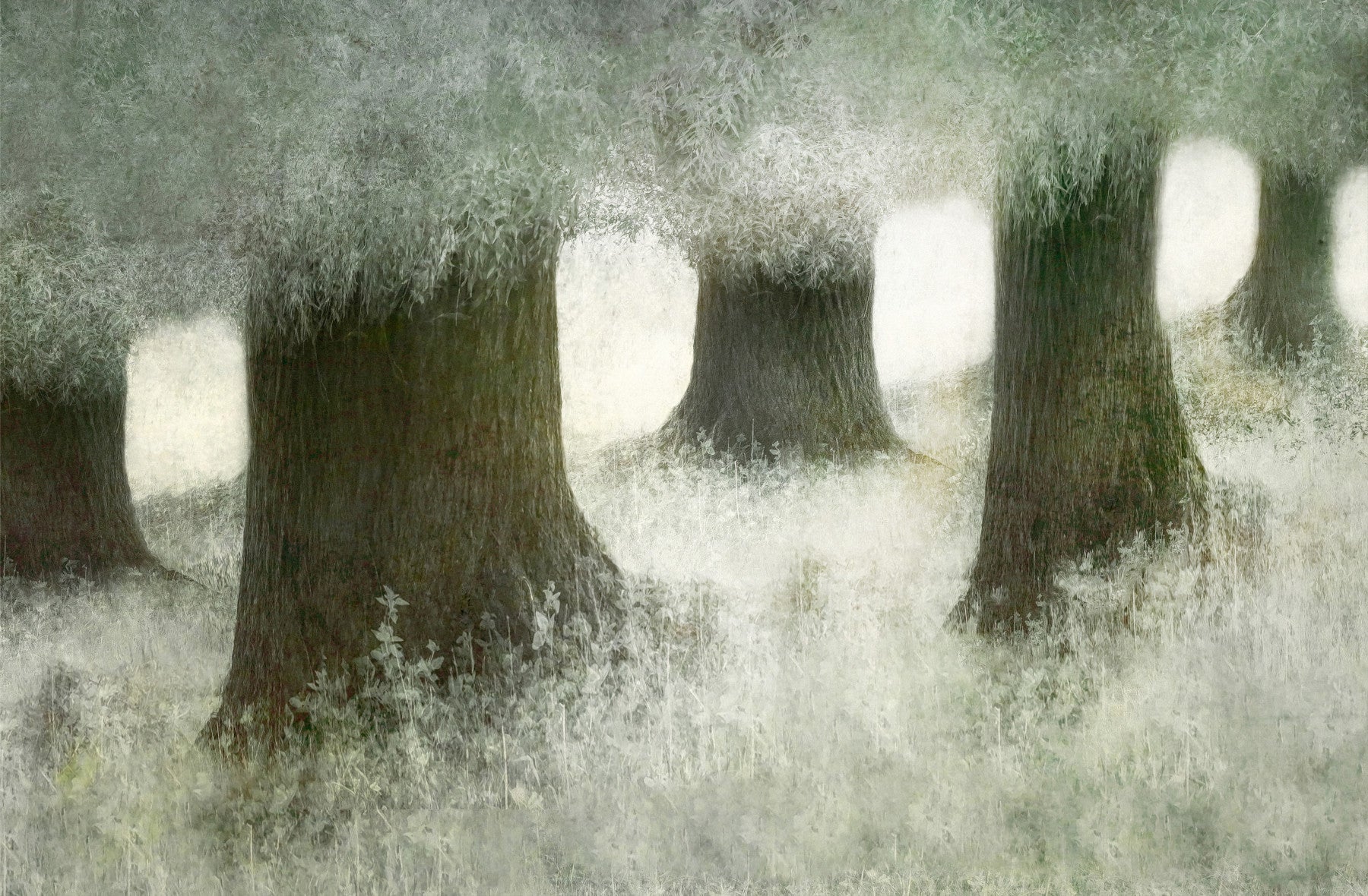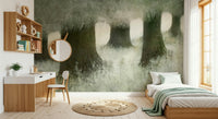 Bring the serenity of the woods to your walls with this artful depiction of a shaded grove. It features majestic trees shrouded in a gentle mist, rendered in muted greens, browns, and creams. This unique wallpaper for walls enhances the ambience of any space, especially bedrooms and living rooms. The soft colour palette and tranquil theme also lend themselves to an office or study. Its neutral tones and nature-inspired style complement a variety of interior designs. The effect is relaxing and welcoming.
