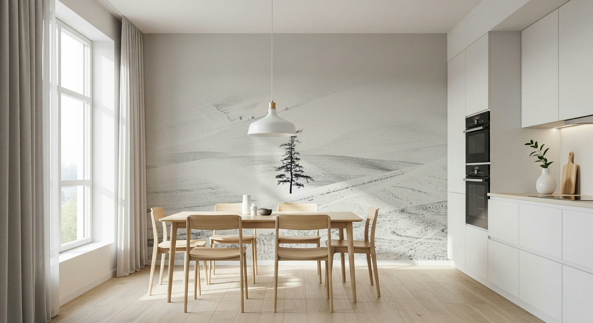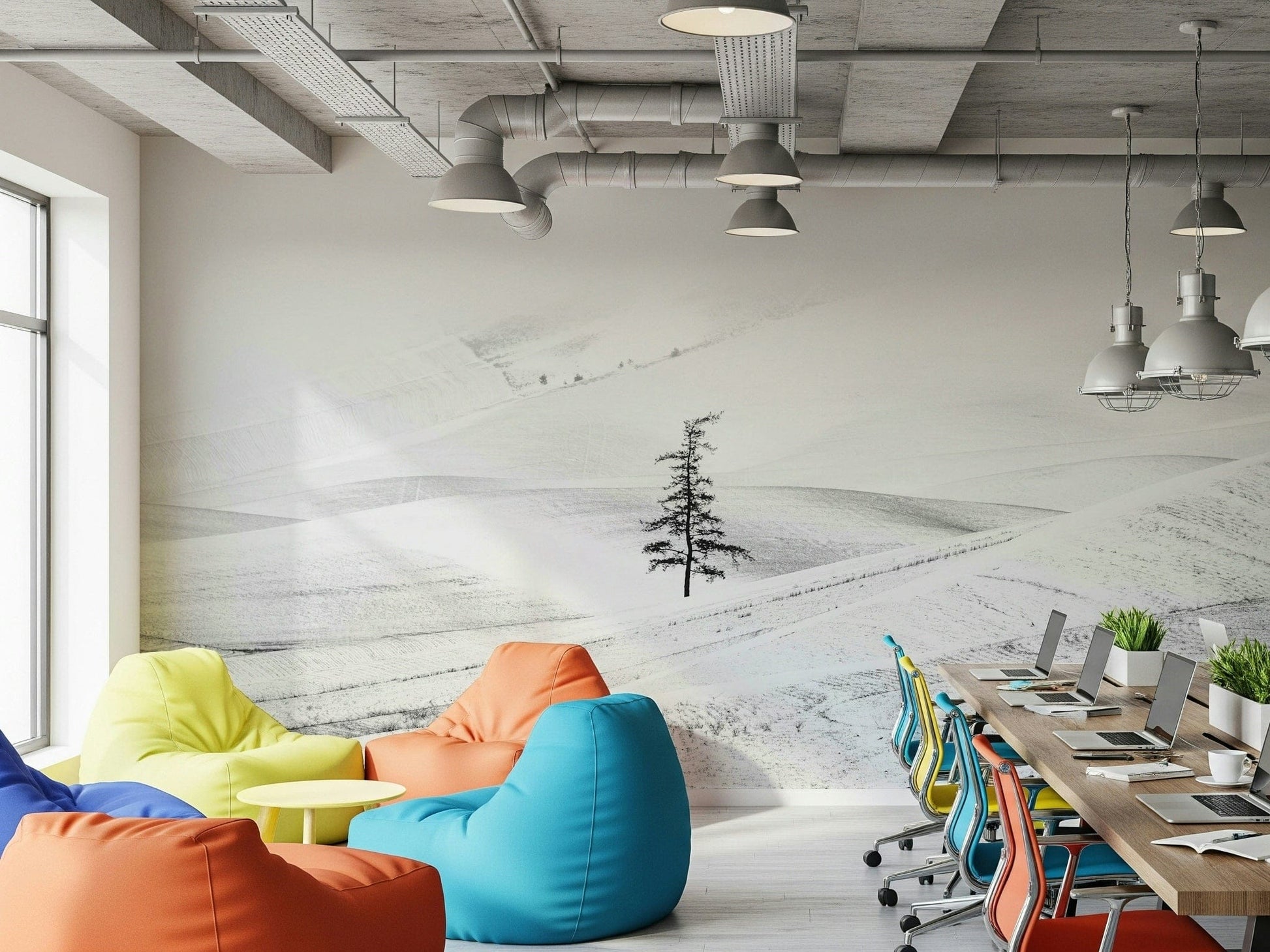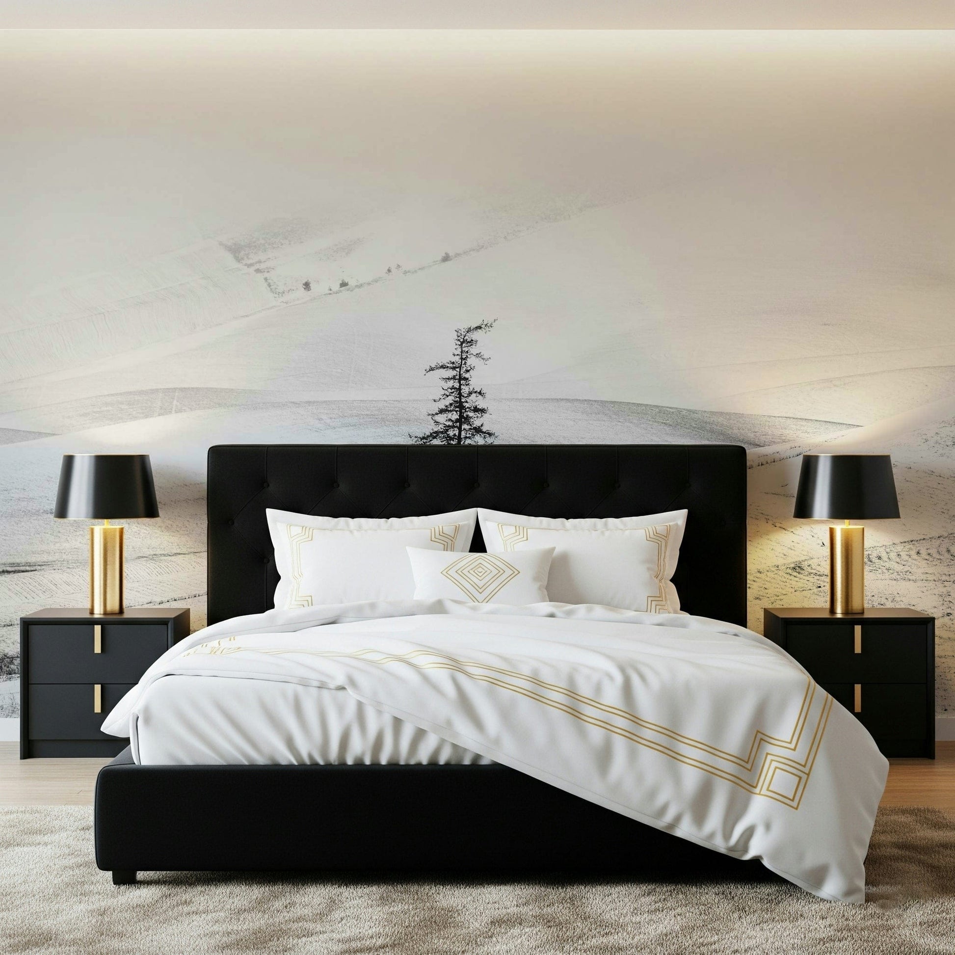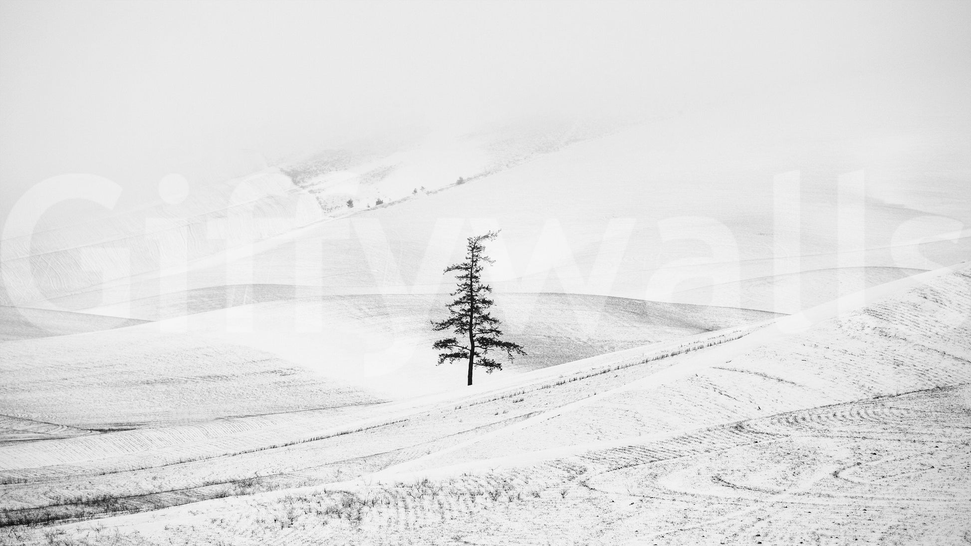 Transform your space with this calming landscape, turning your room into a serene escape. A solitary tree graces snow-covered hills, producing an artistic mood. The monochrome palette adds depth to any bedroom or living room. This wallpaper for walls can fit seamlessly into modern, minimalist and elegant decors. Its subtle patterns offer a unique focal point.