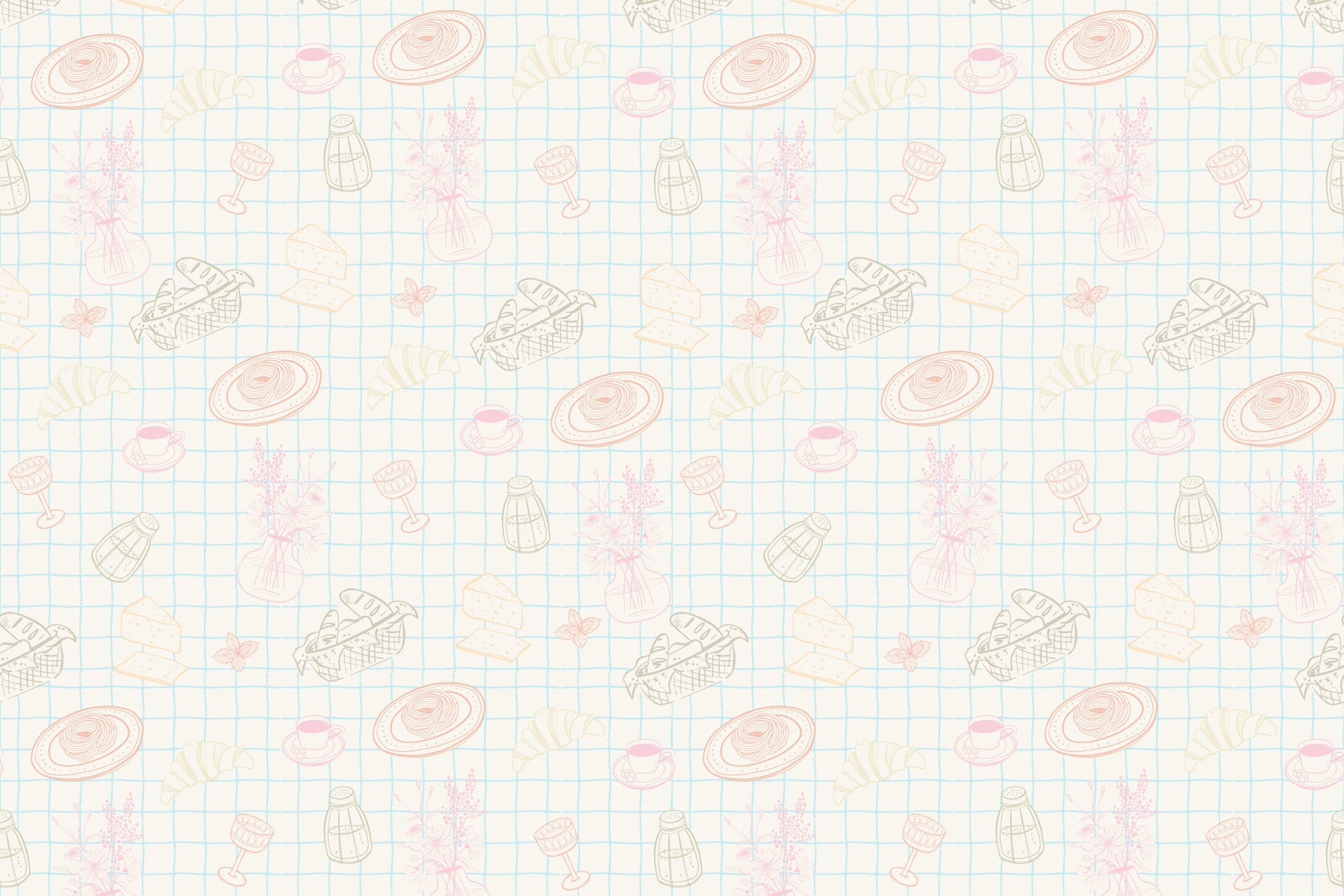 The design features a repeating pattern of soft, delicate picnic-themed items.