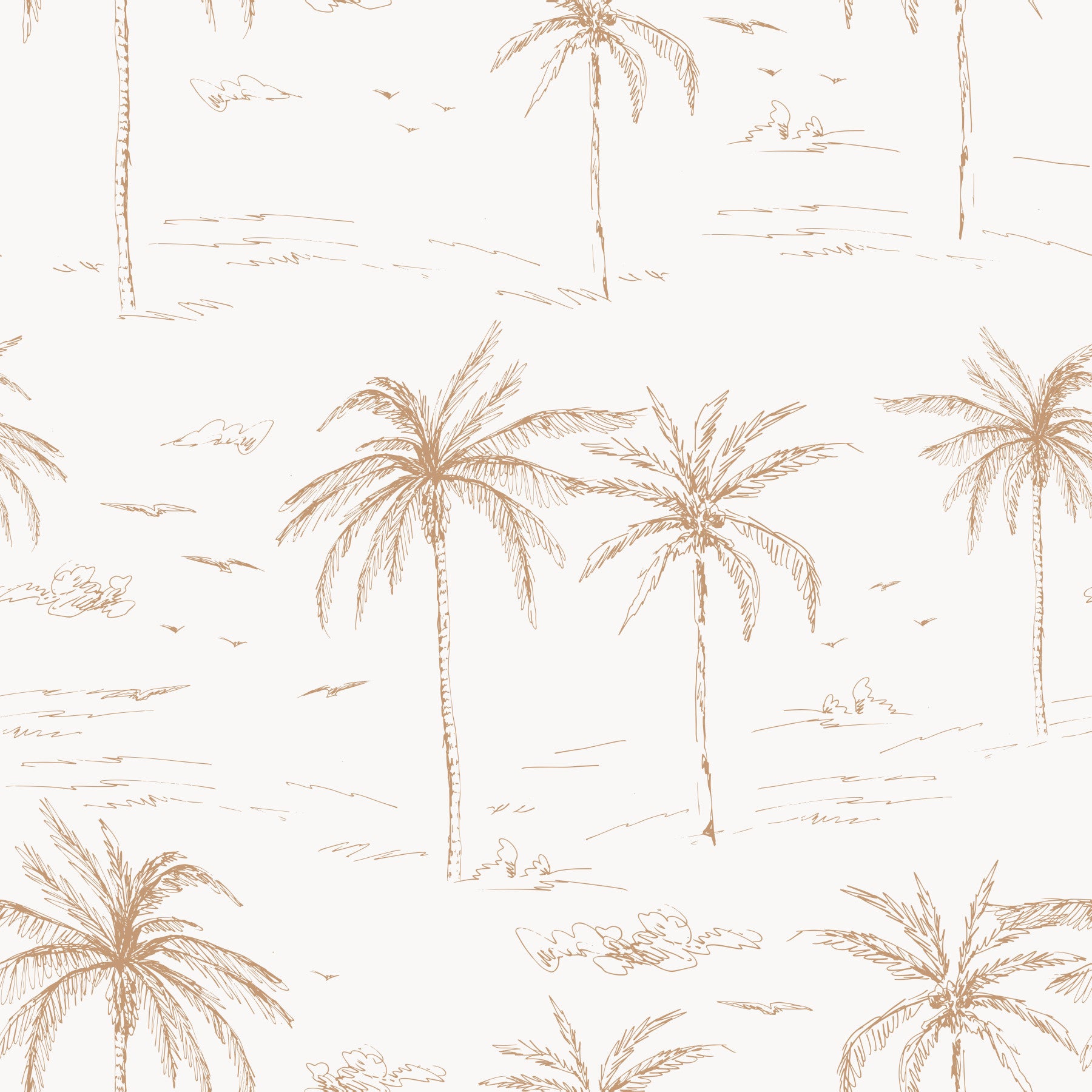 Bring a coastal vibe to your home with this subtle palm tree sketch wallpaper. The delicate lines of the palm trees and birds evoke a sense of calm and relaxation. The warm beige tones offer a neutral backdrop, perfect for living rooms, bedrooms, or hallways. Use this wallpaper for walls to create a serene retreat. It complements minimalist, bohemian, and coastal interiors with its understated charm and organic feel.