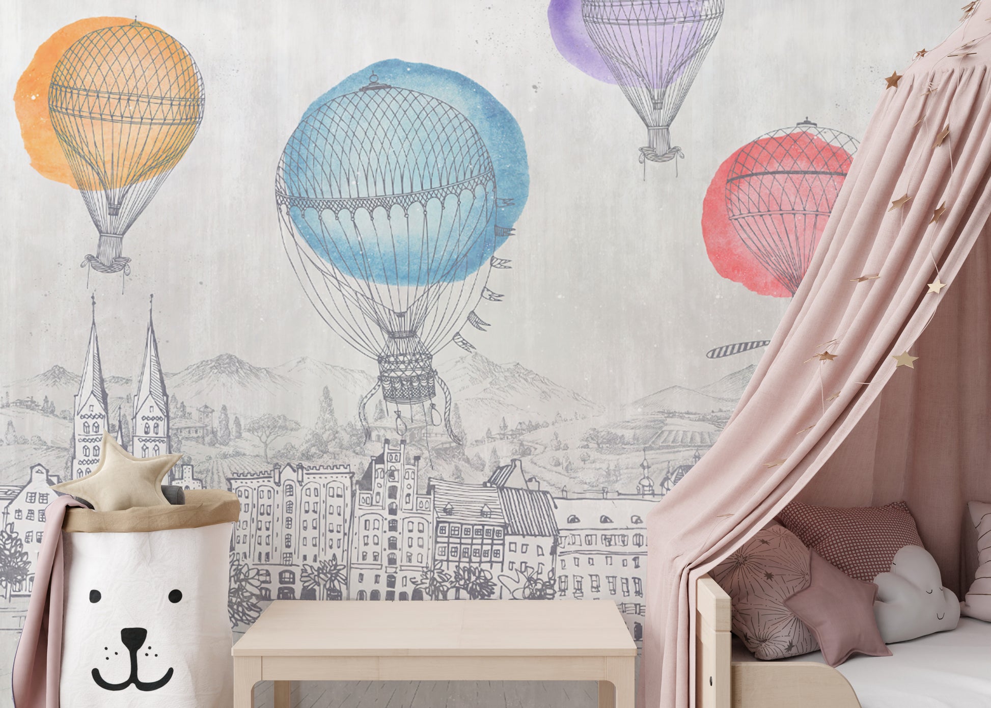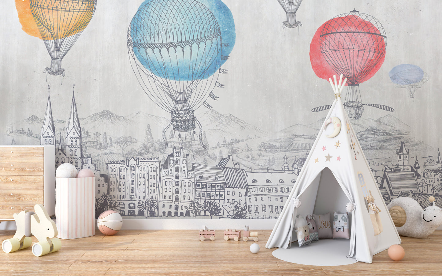 Whimsical Hot Air Balloon Wall Mural