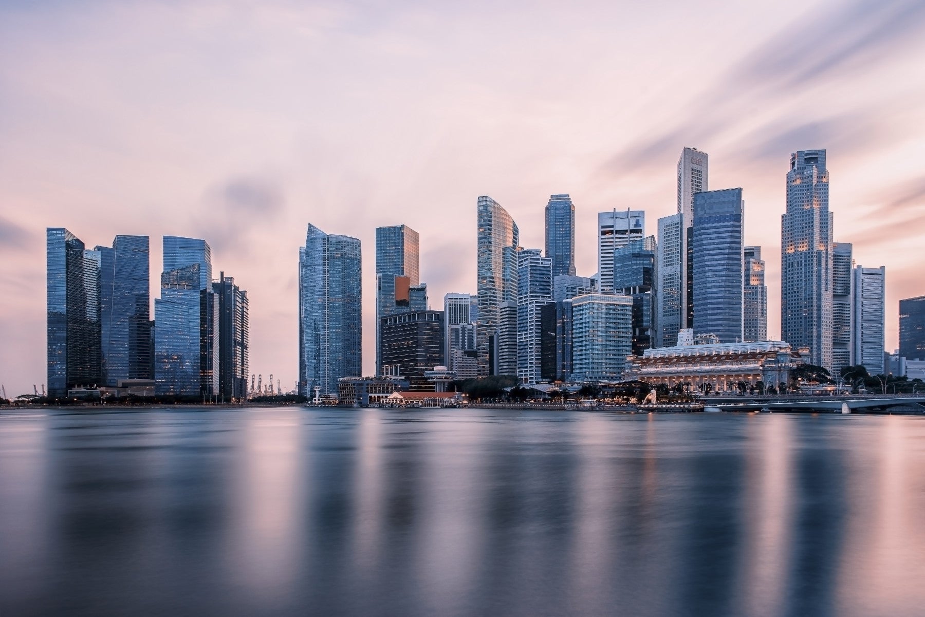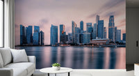 Elevate your interior design with this captivating image. It shows an impressive skyline bathed in the soft light of twilight. The towering structures mirror in the still water. The colour palette employs a calming blend of blues and pinks, perfect for creating a sophisticated atmosphere. Ideal for a feature wall in your living room, bedroom, or study, this wallpaper for walls adds a touch of contemporary refinement and depth. This wallpaper makes spaces feel larger and more interesting.