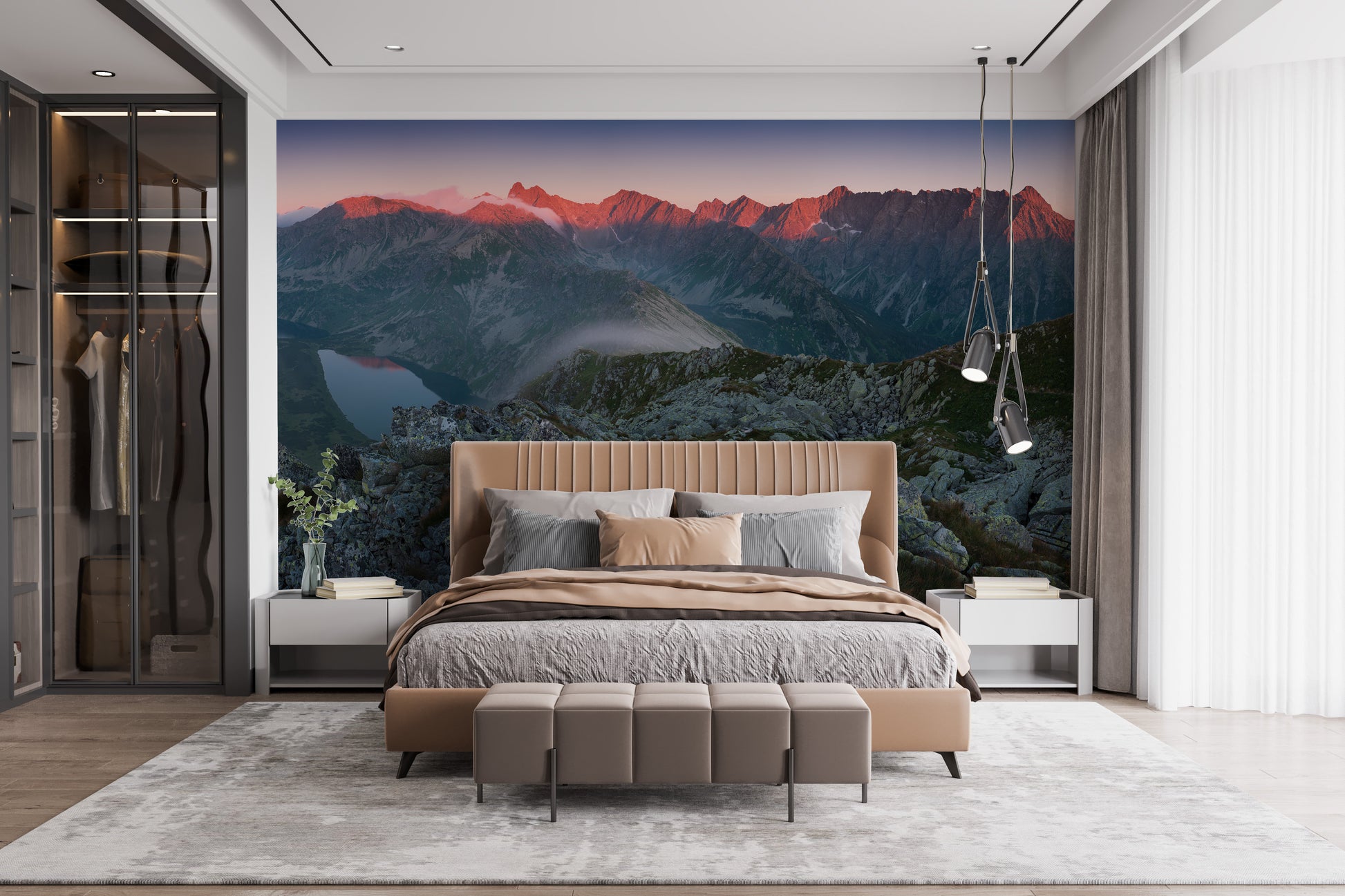 Peel-and-stick Slovakian mountain sunset wallpaper
