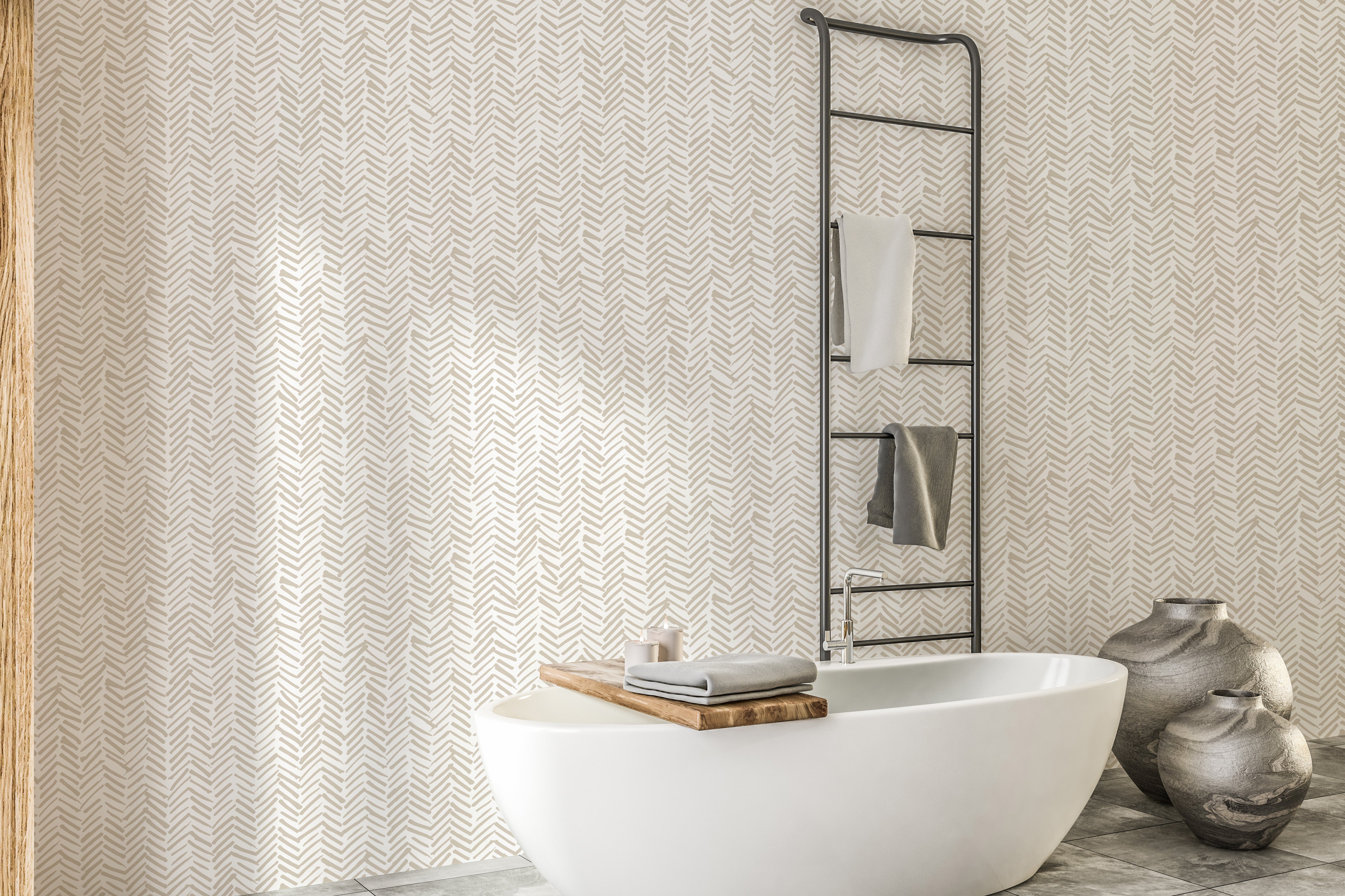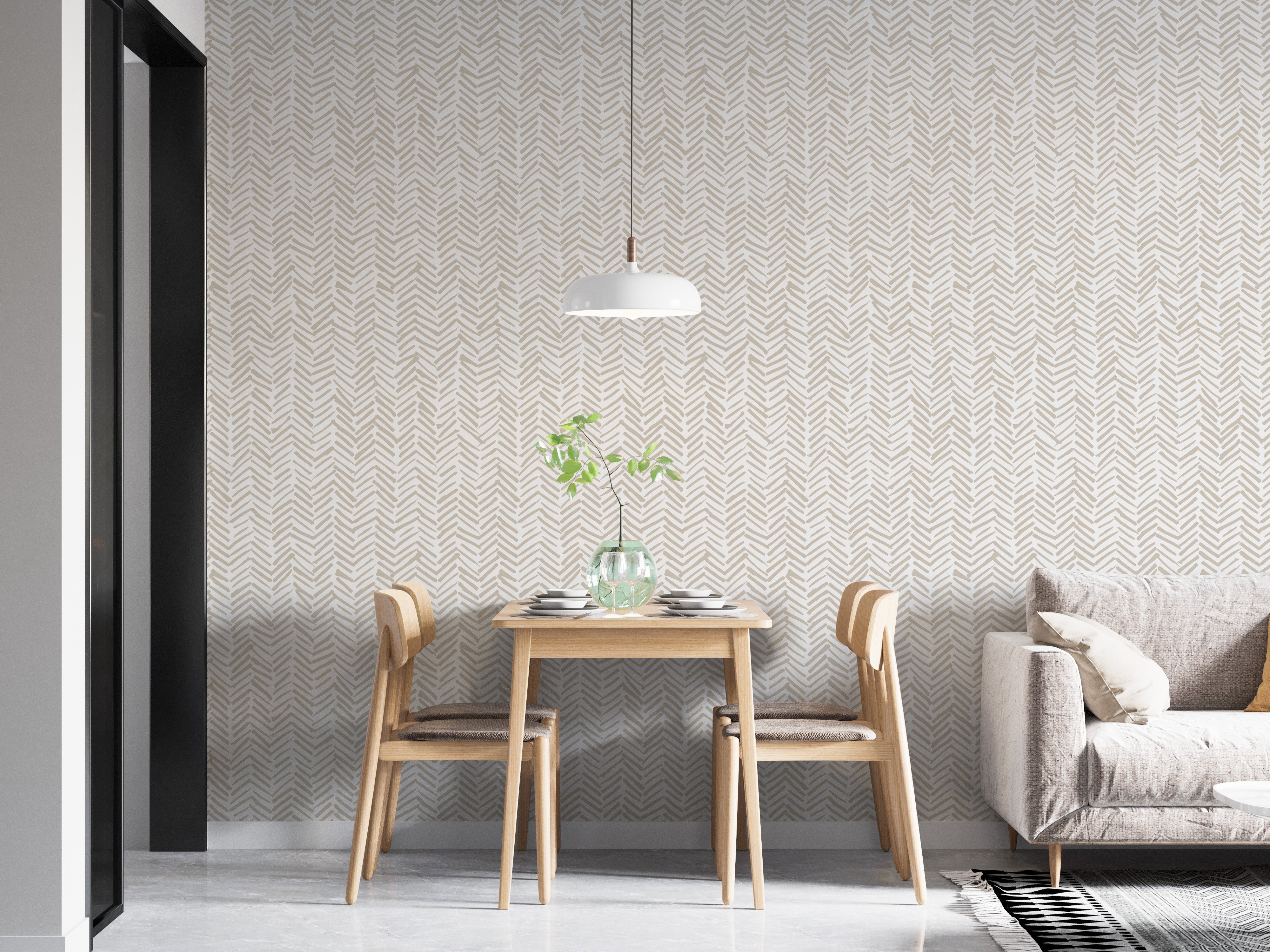 Beige herringbone pattern accent wallpaper