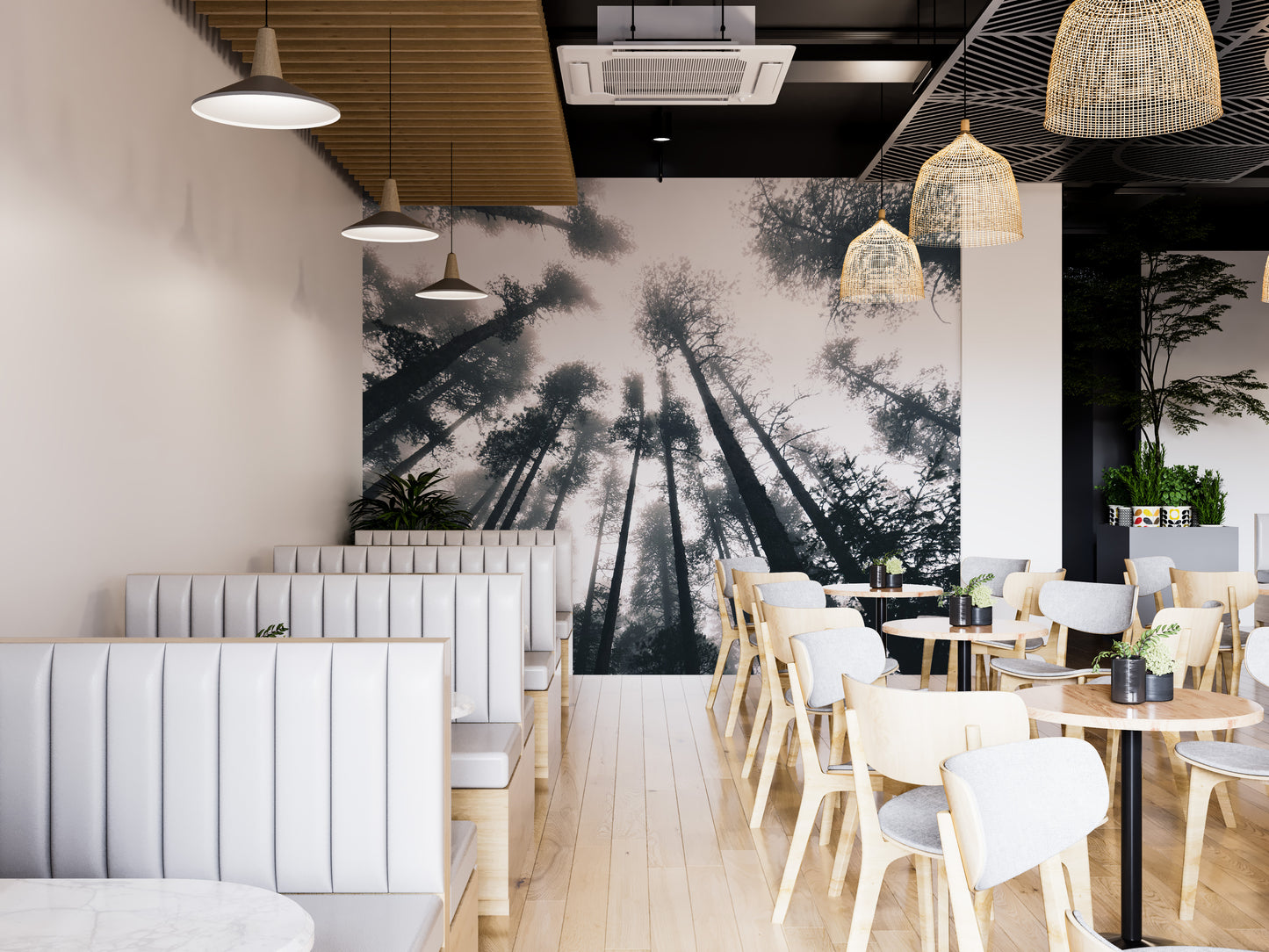 Smokey Halloween forest mural adding mystery to interiors.