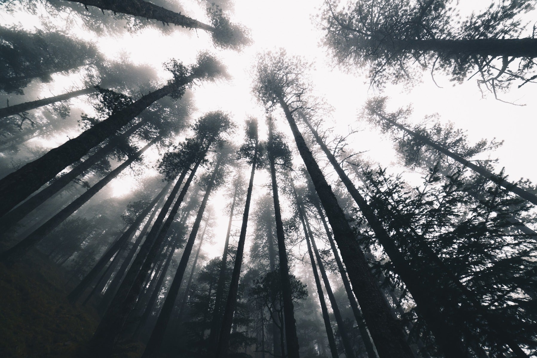 Smokey treetop wallpaper mural creating a spooky ambiance.