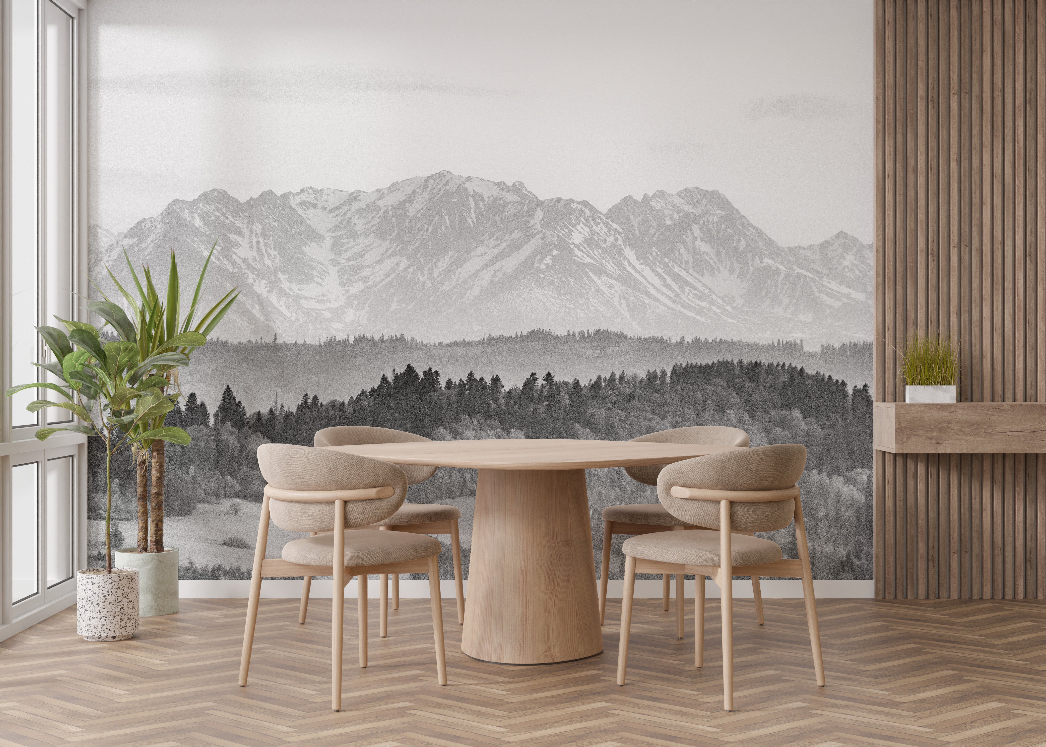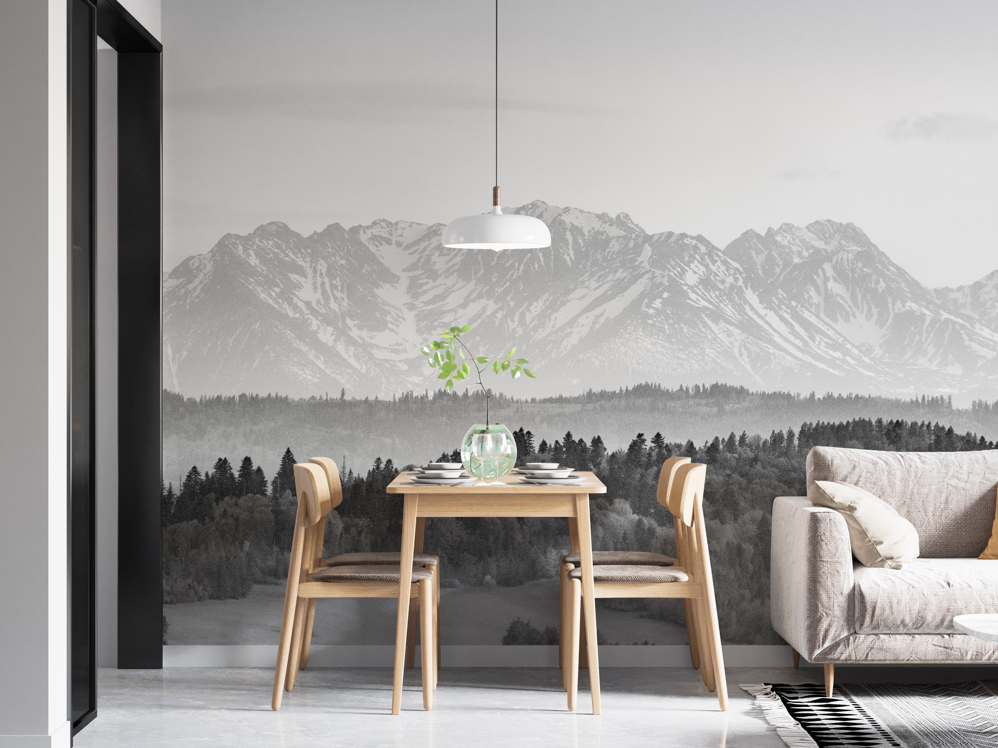 Dive into the serene beauty of winter with our snow-covered mountains winter mural wallpaper. Designed to captivate and inspire, this mountain wallpaper perfectly captures the pristine elegance of snow-clad peaks and vast white expanses. Immerse your living space in the calming ambiance of nature's grandeur with this exceptional white color wallpaper. Ideal for transforming your living room into a tranquil retreat, this design adds depth, sophistication, and a touch of the outdoors to any interior space. Experience the majesty of towering mountains daily and bring fresh air to your home decor. Elevate your living room's aesthetic with this breathtaking mountain wallpaper, and let nature's magnificence be the backdrop to your everyday life.