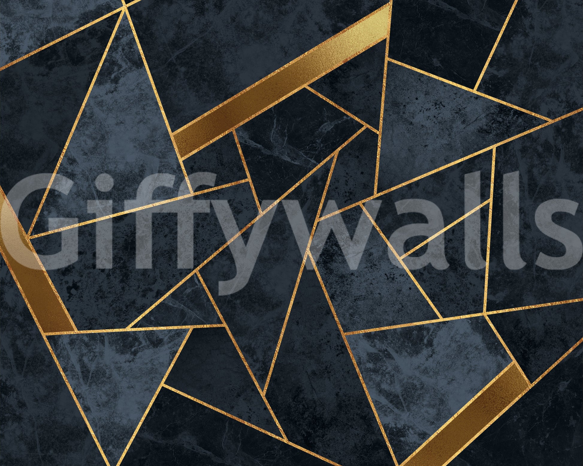Elegant wall mural featuring mosaic textures in blue and gold tones.