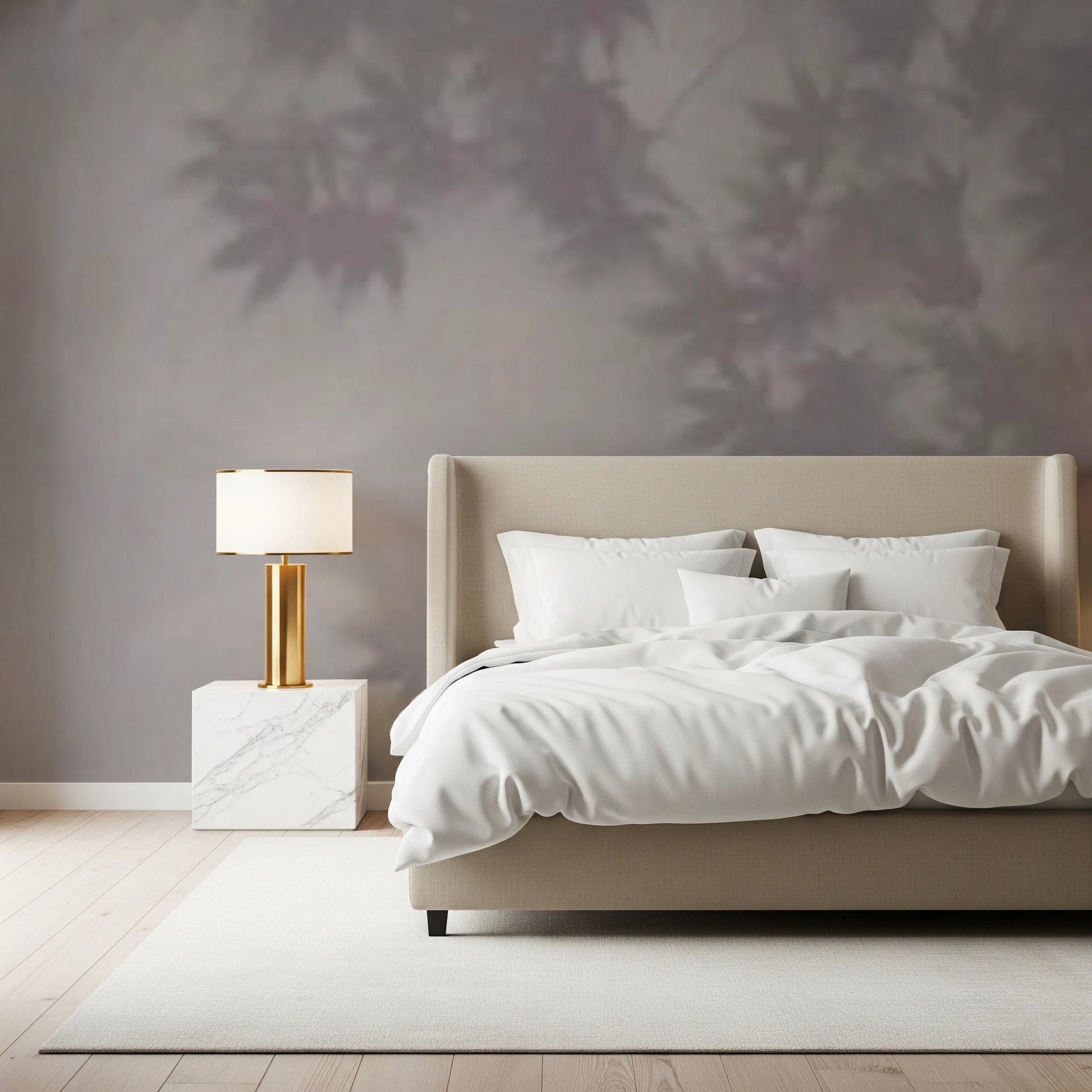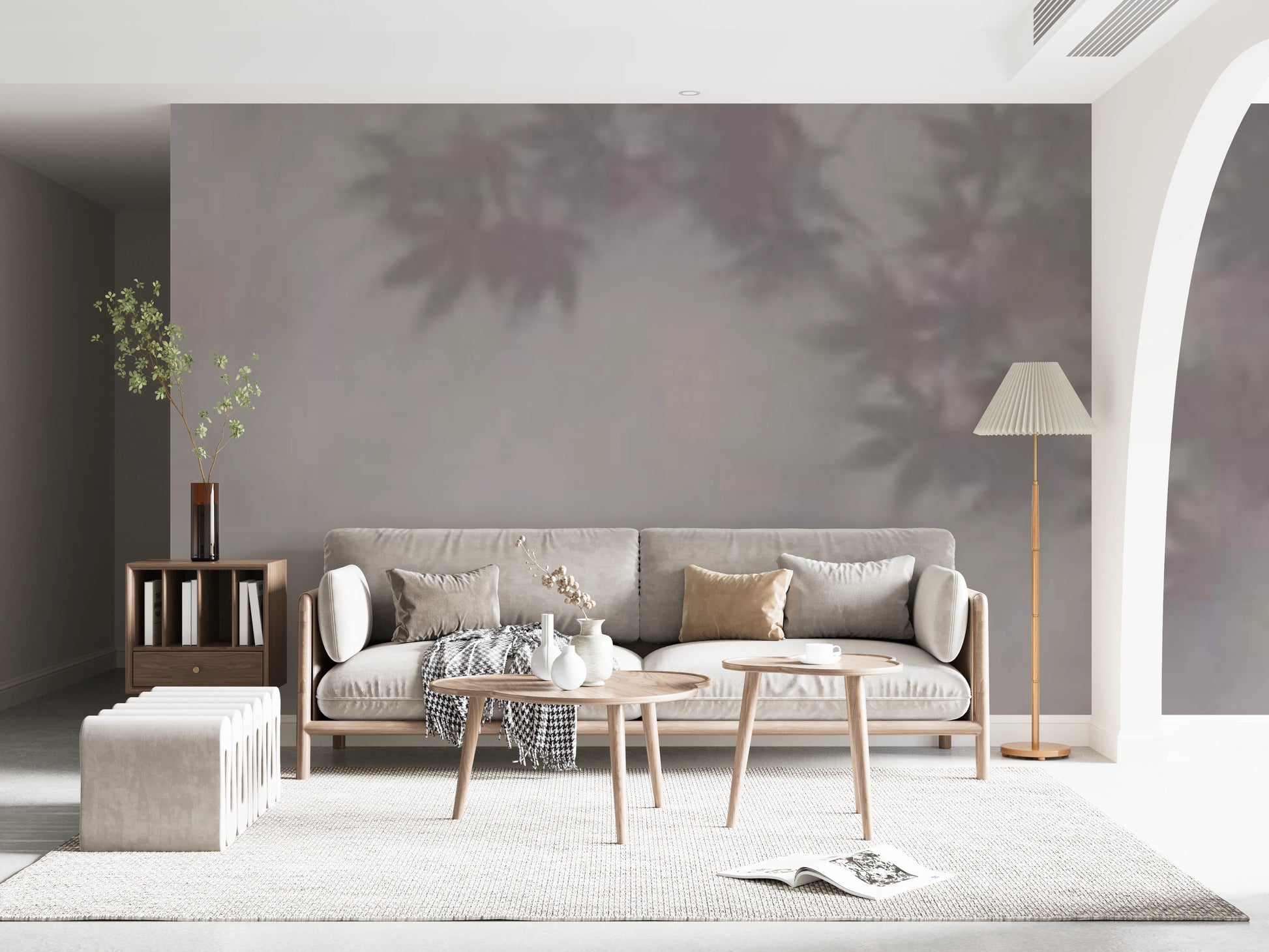 Introduce a touch of ethereal charm to your interiors with this delicate foliage-inspired wallpaper for walls. The soft, hazy design features subtle leaves, creating a dreamlike atmosphere in any room. Its muted colour palette of greys and faded purples establishes a serene, calming backdrop. This wallpaper complements various decorating styles, from minimalist to traditional, and works especially well in bedrooms, living rooms, or hallways. Transform your space into a tranquil retreat with its understated elegance.