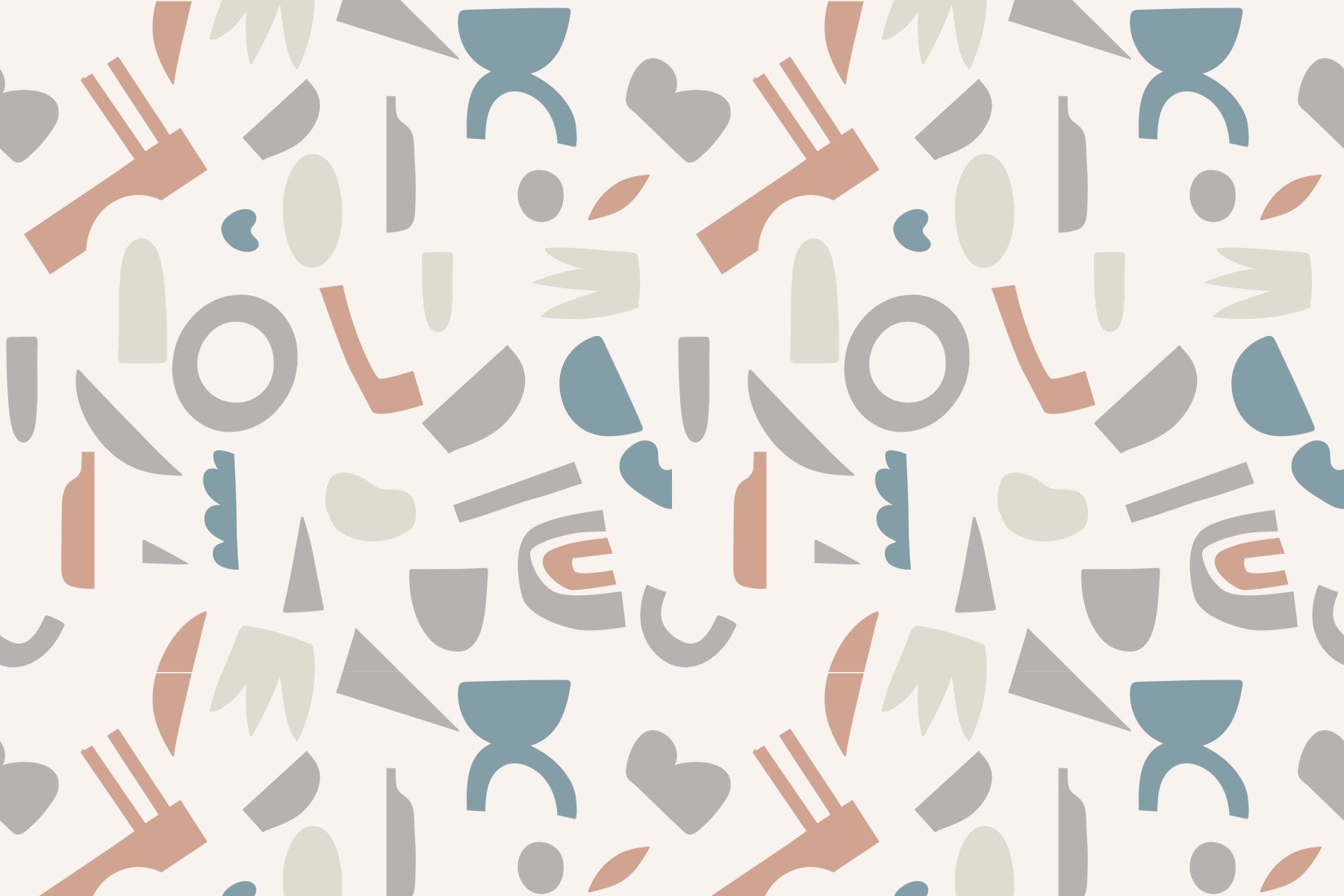 Elevate your space with this inviting abstract wallpaper. The design features a pattern of soft geometric shapes in a muted colour palette. Gentle blues, warm browns, and soft greys create a calming atmosphere. This versatile wallpaper for walls suits bedrooms, living rooms, or nurseries. The simple shapes and soothing hues bring a touch of modern elegance and playful charm to any interior.
