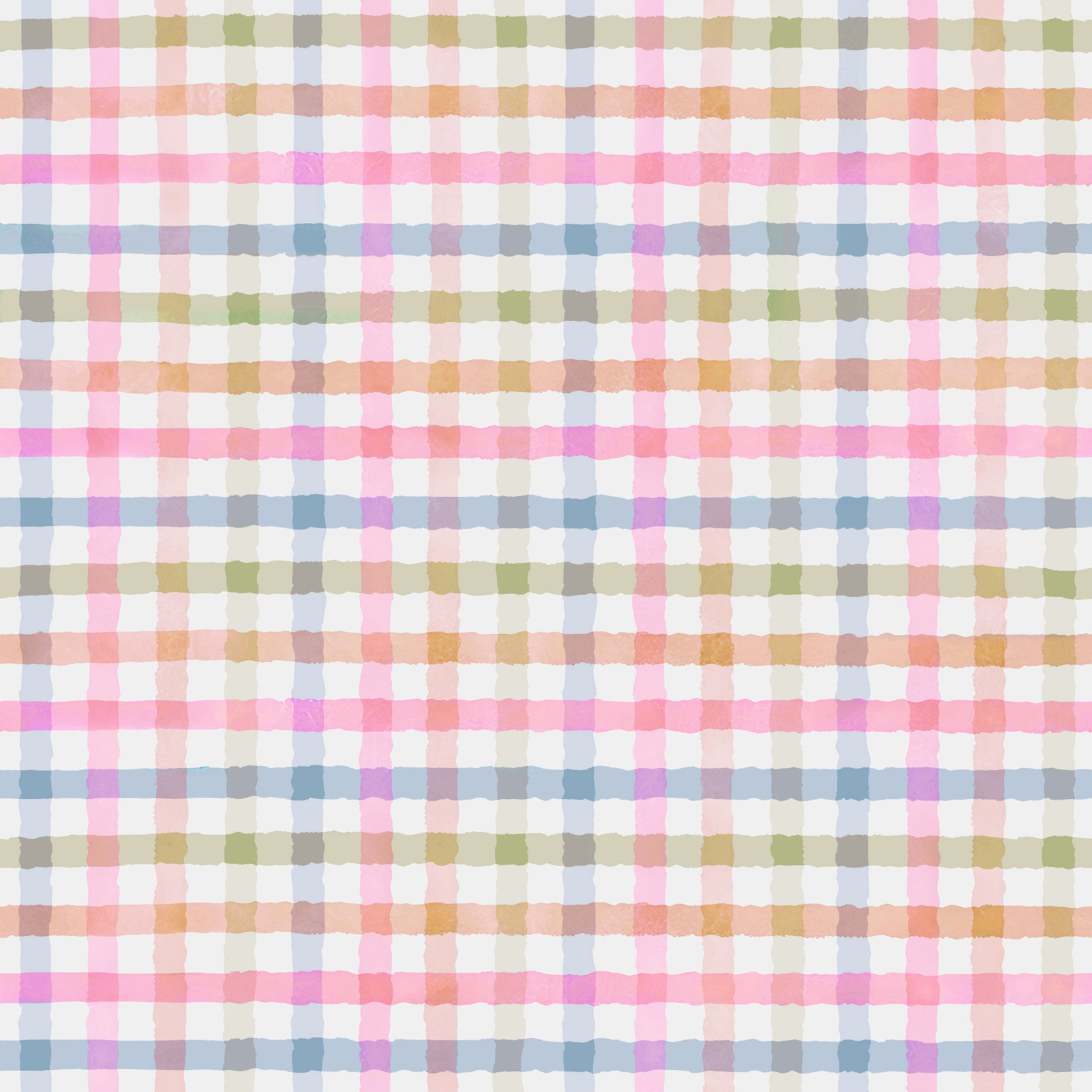 Soft Hand-Painted Pastel Gingham Plaid Checkered Wallpaper.