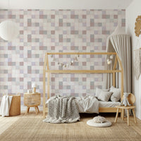 A soothing arrangement of hand-painted squares in warm blush and beige tones, creating a calm and modern mosaic effect. Perfect for adding subtle texture and warmth to contemporary spaces.