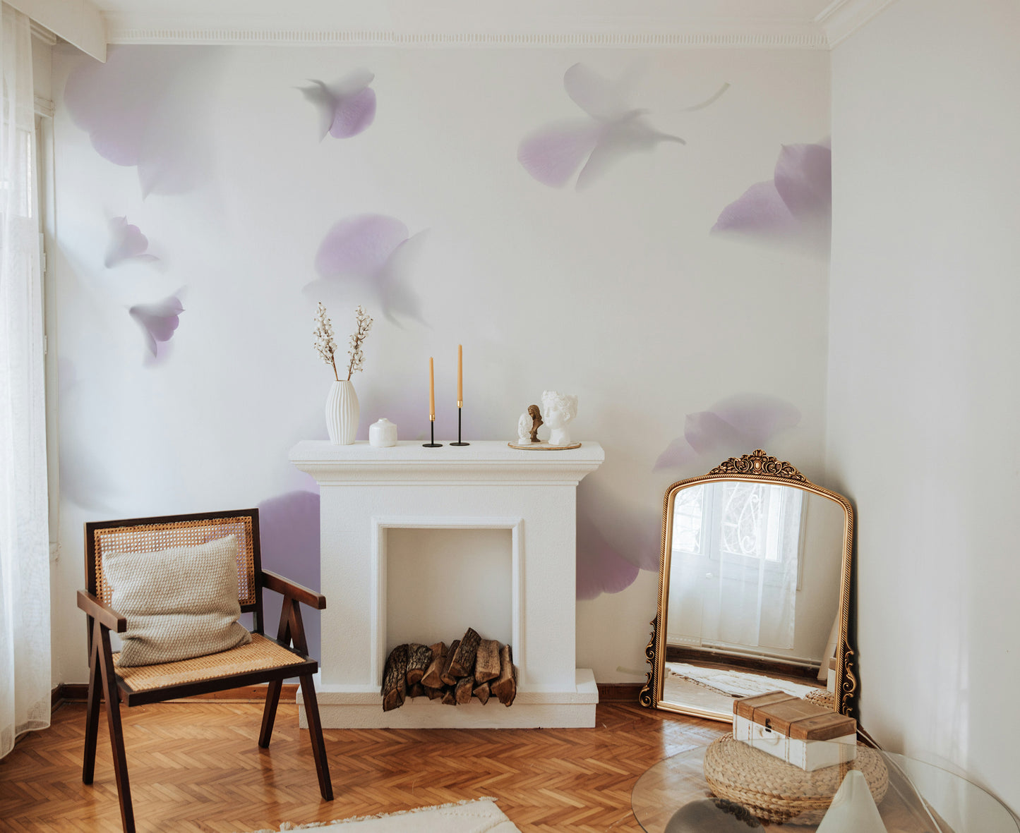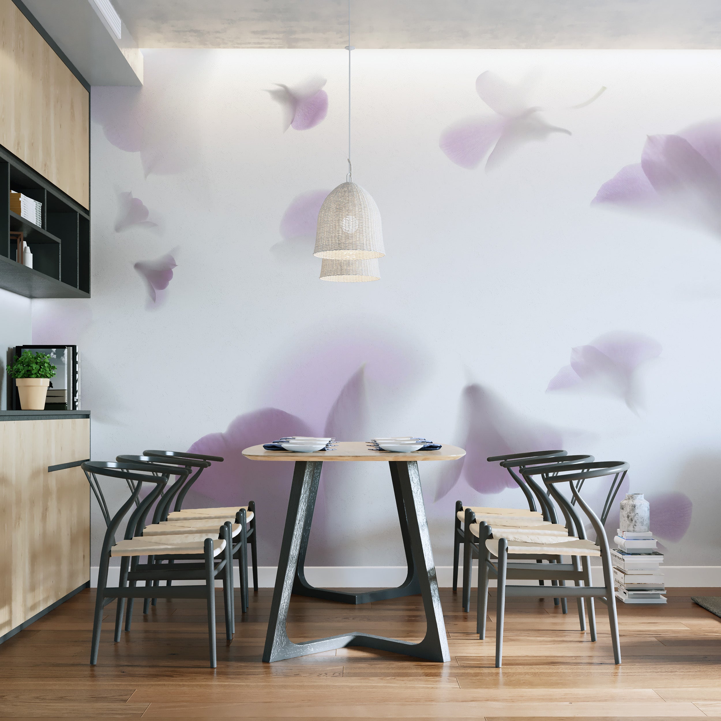 This soft pastel floral wallpaper gives your walls a gentle, romantic feel. Featuring delicate pink petals and subtle hues, this pink flower mural adds charm to any room. The minimalist flower wallpaper design blends seamlessly with modern interiors, while the soft colors create a soothing look. This romantic floral wallpaper complements various styles, perfect for bedrooms, living rooms, or even nurseries. The soft pastel wall design adds a light, airy feel, making any space open and fresh. This wallpaper offers an elegant touch to your walls with its graceful floral patterns.