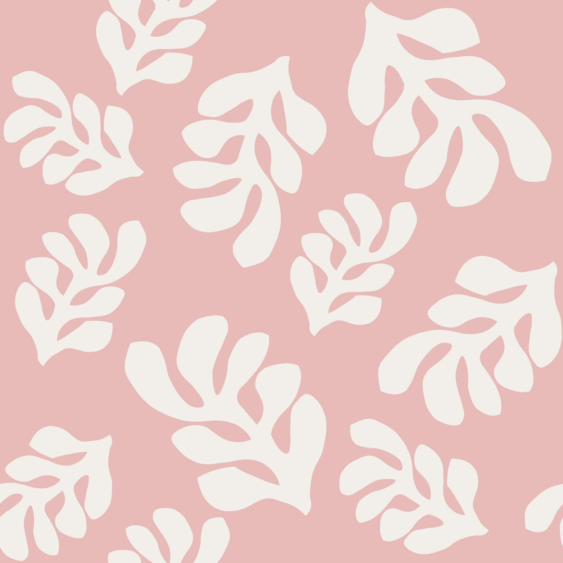 Elevate your interior with this elegant wallpaper showcasing soft pink and cream tones. This features a playful pattern of stylized leaf shapes in a creamy white, set against a gentle pink background. This design provides a relaxed atmosphere for any room in your house. It's perfect for bedrooms, nurseries, or bathrooms. Use this wallpaper for walls to create a comforting ambiance in any room. The delicate color palette easily complements modern, minimalist, or Scandi-style decors.