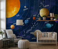 Embark on an interstellar journey with this captivating wall décor piece, titled 'Solar System Adventure'. The design showcases a whimsical yet informative rendition of our solar system, set against a backdrop of deep indigo sprinkled with stars. From the radiant sun blazing in vibrant orange, to the icy depths of Neptune in shades of purple, each planet is carefully rendered with its own distinctive colours and textures. Saturn's majestic rings, Jupiter's swirling storms, and the rugged terrain of Mars are all brought to life in delightful detail. Dotted lines illustrate the orbital paths, guiding the eye on a cosmic voyage. The asteroid belt adds texture. Spark imagination and wonder with this charming depiction of the universe, a perfect addition for any room seeking a touch of cosmic exploration.