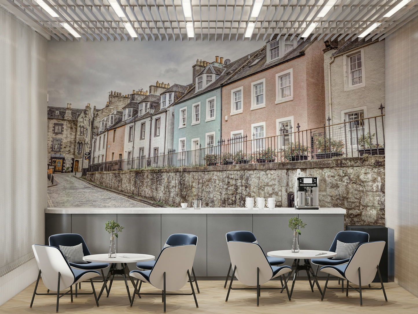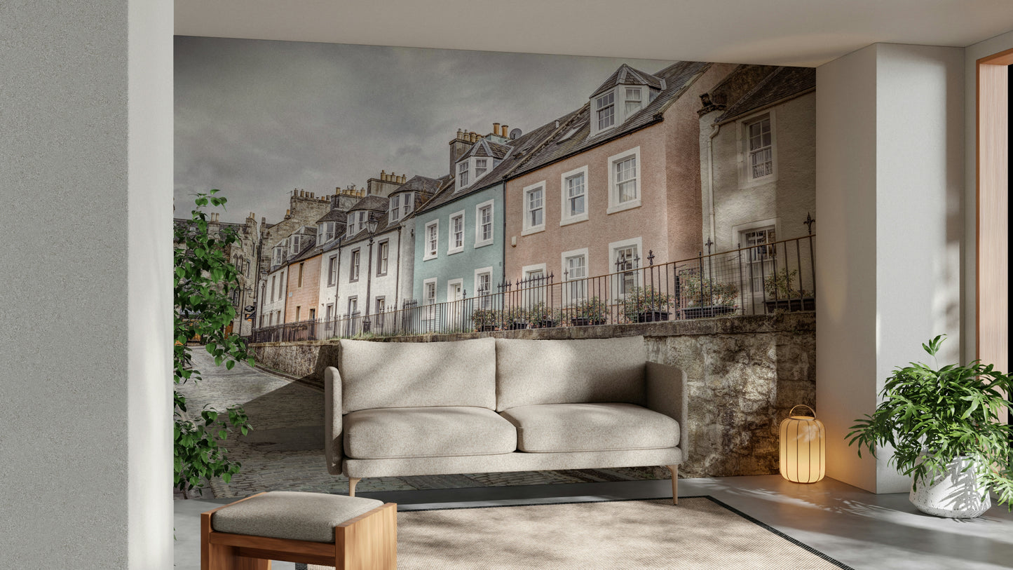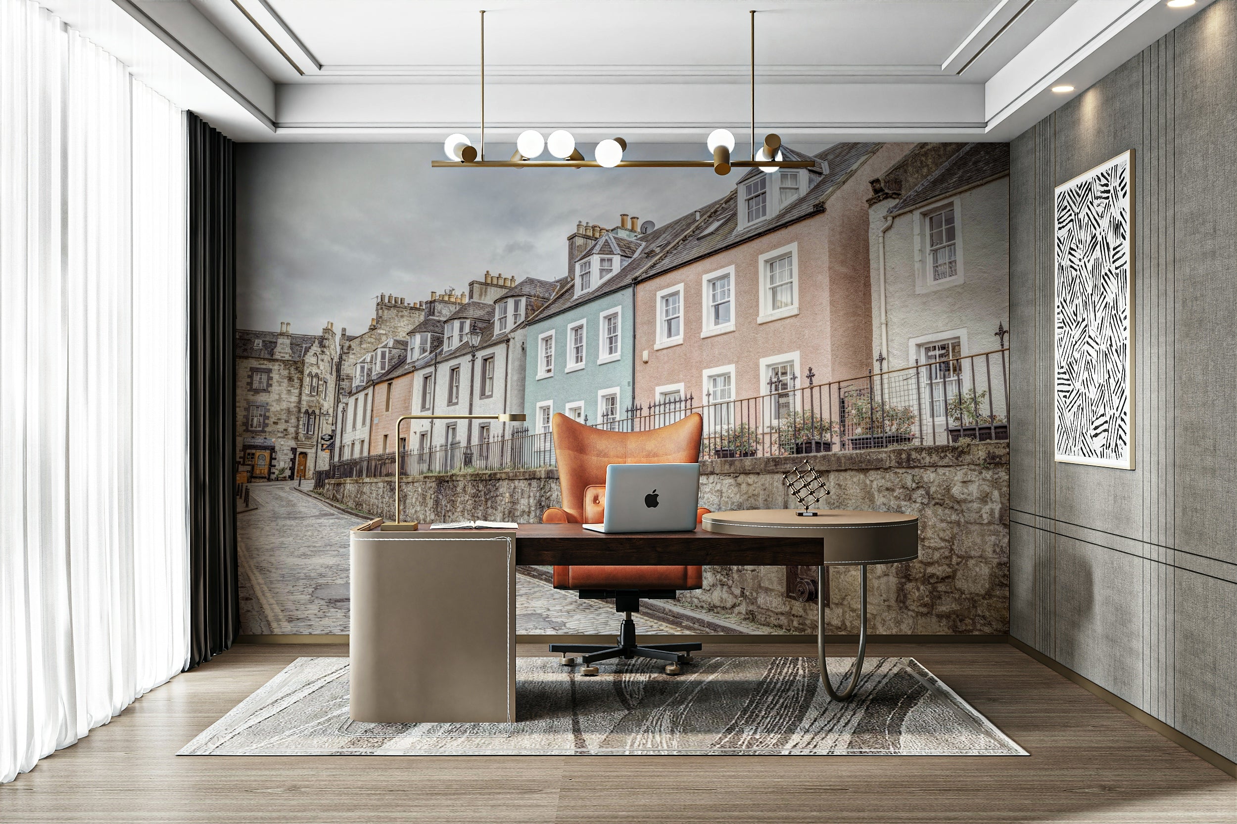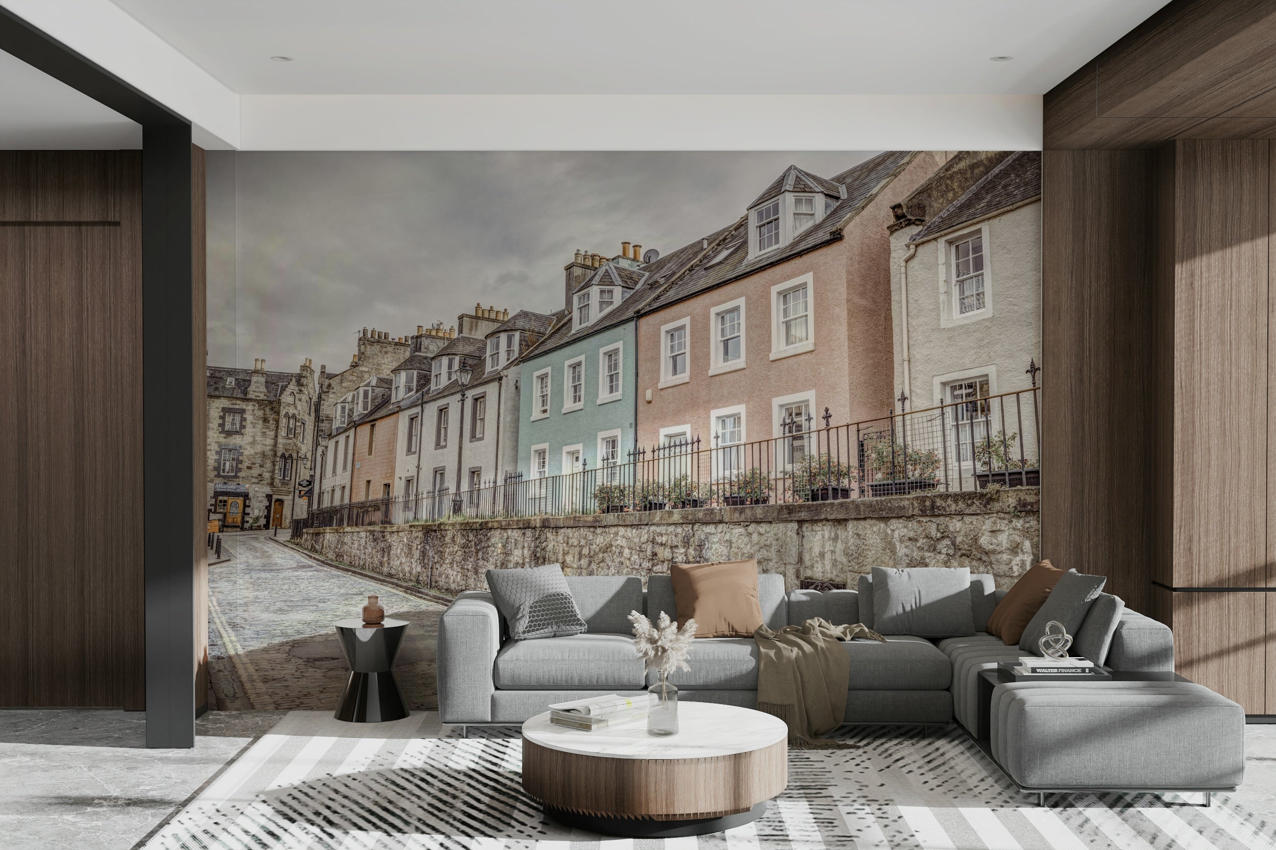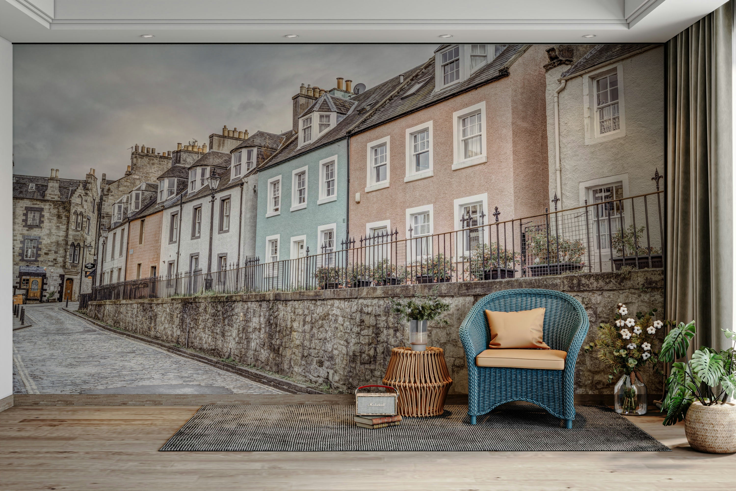 The South Queensferry Houses Wall Mural offers a charming view of pastel-colored homes lining a historic cobblestone street. With its unique blend of architectural elegance and soft hues, this mural wallpaper brings a sense of calm and nostalgia to any space. Perfect for living rooms, bedrooms, or even office spaces, this wall mural complements a variety of interior styles. The high-quality print ensures vibrant colors, while the easy application process makes it simple to update your space with a timeless, picturesque design. A beautiful way to refresh your walls with a piece of classic beauty.
