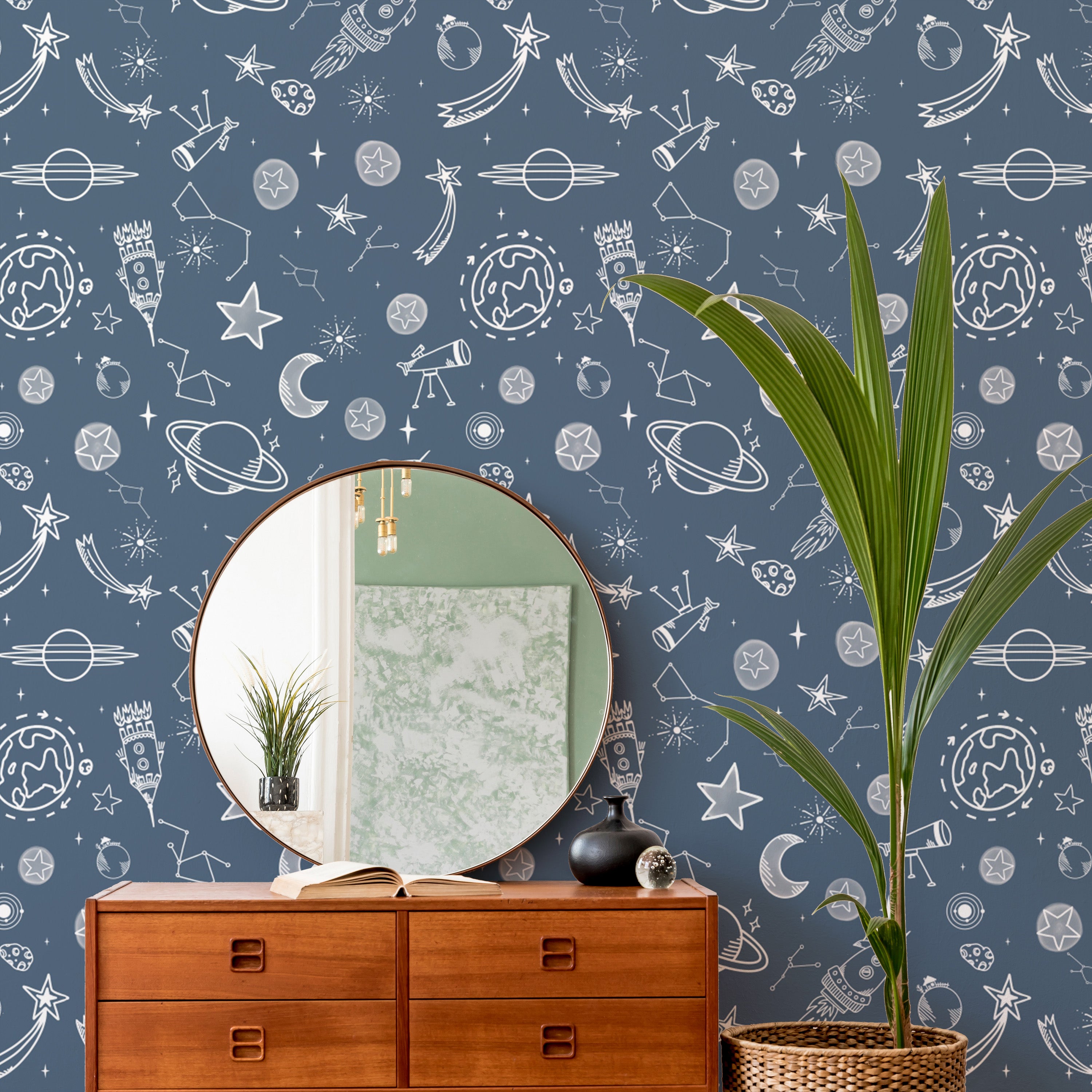 Space Voyage Blue Wallpaper for a space-inspired room