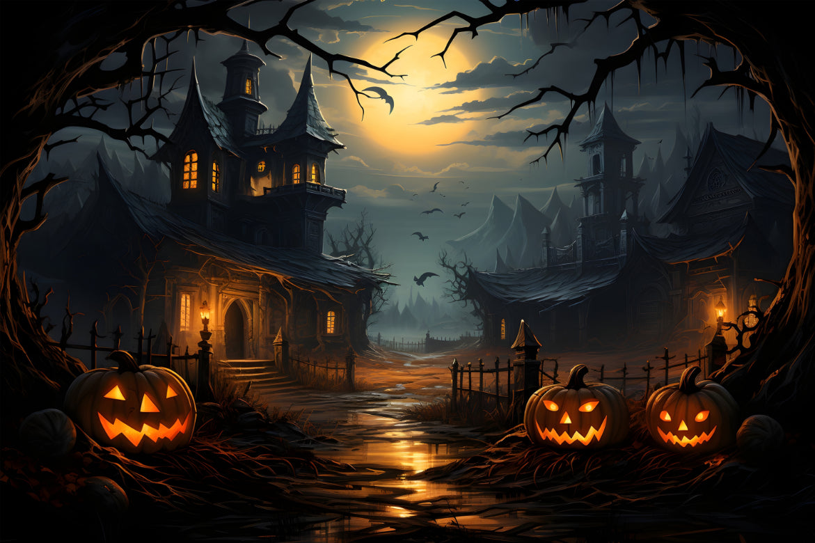 Add a touch of elegance to any room with this spooky haunted house peel & stick wallpaper mural, the best and most eye-catching way to creep up your walls! A dark foggy environment with a mysterious Haunted House, twining trees and ghostly lighted Jack-O-Lanterns intend to deliver an eerie ambiance. The perfect mural for those looking to make a huge statement this Halloween, without the bother of traditional wallpaper. Peel and stick design for easy application and removal Claim yours now and get set for a super-scary Halloween. Limited Stock: Don’t miss out on these popular wallpaper designs!