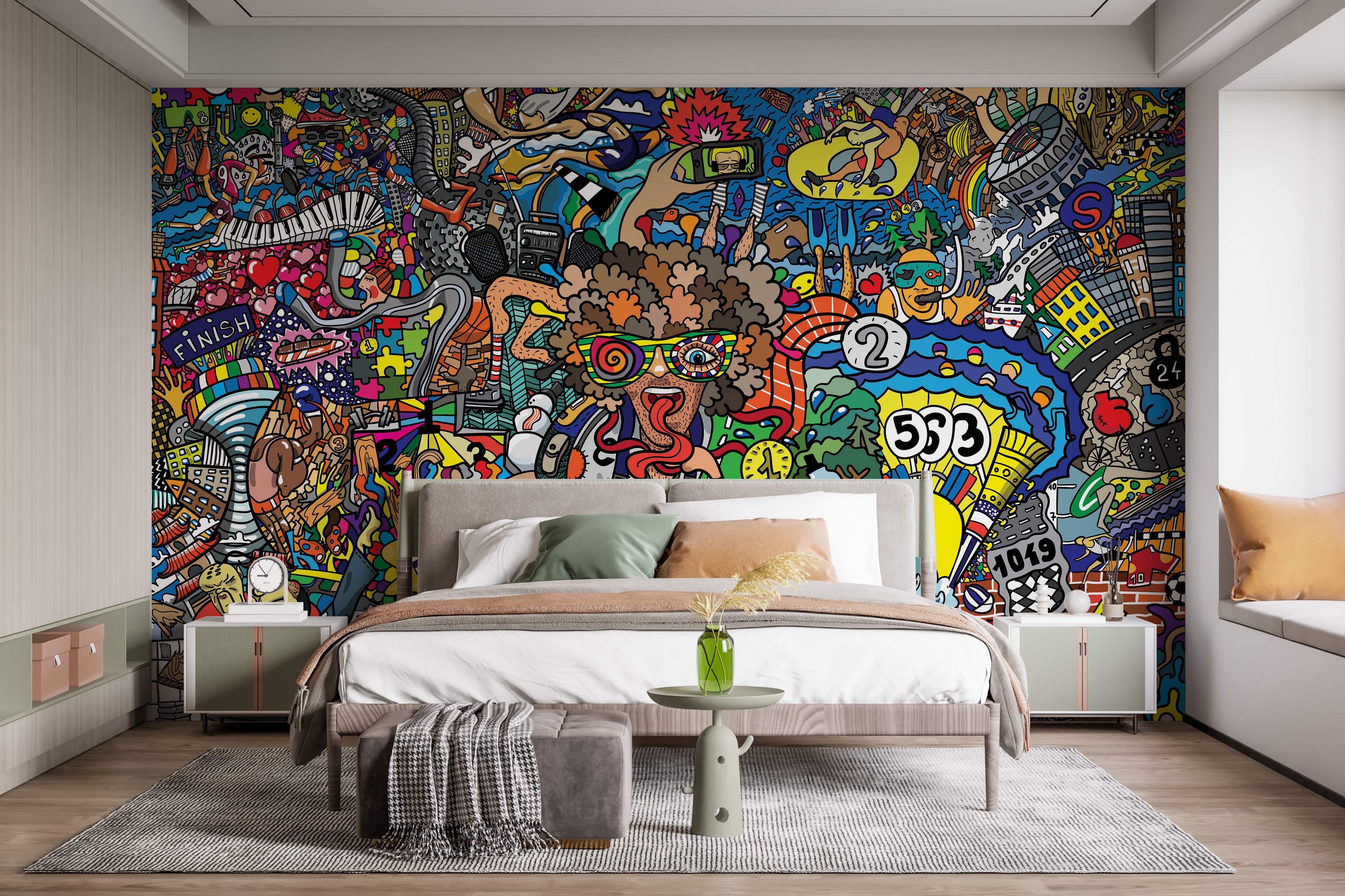 Vibrant sports-inspired graffiti mural wallpaper for modern walls.