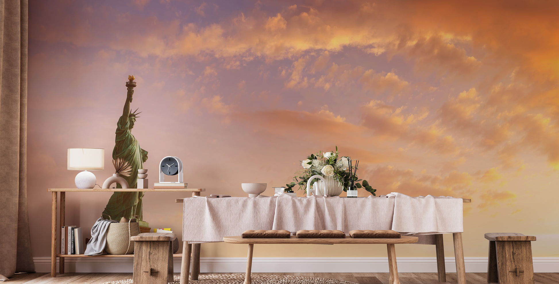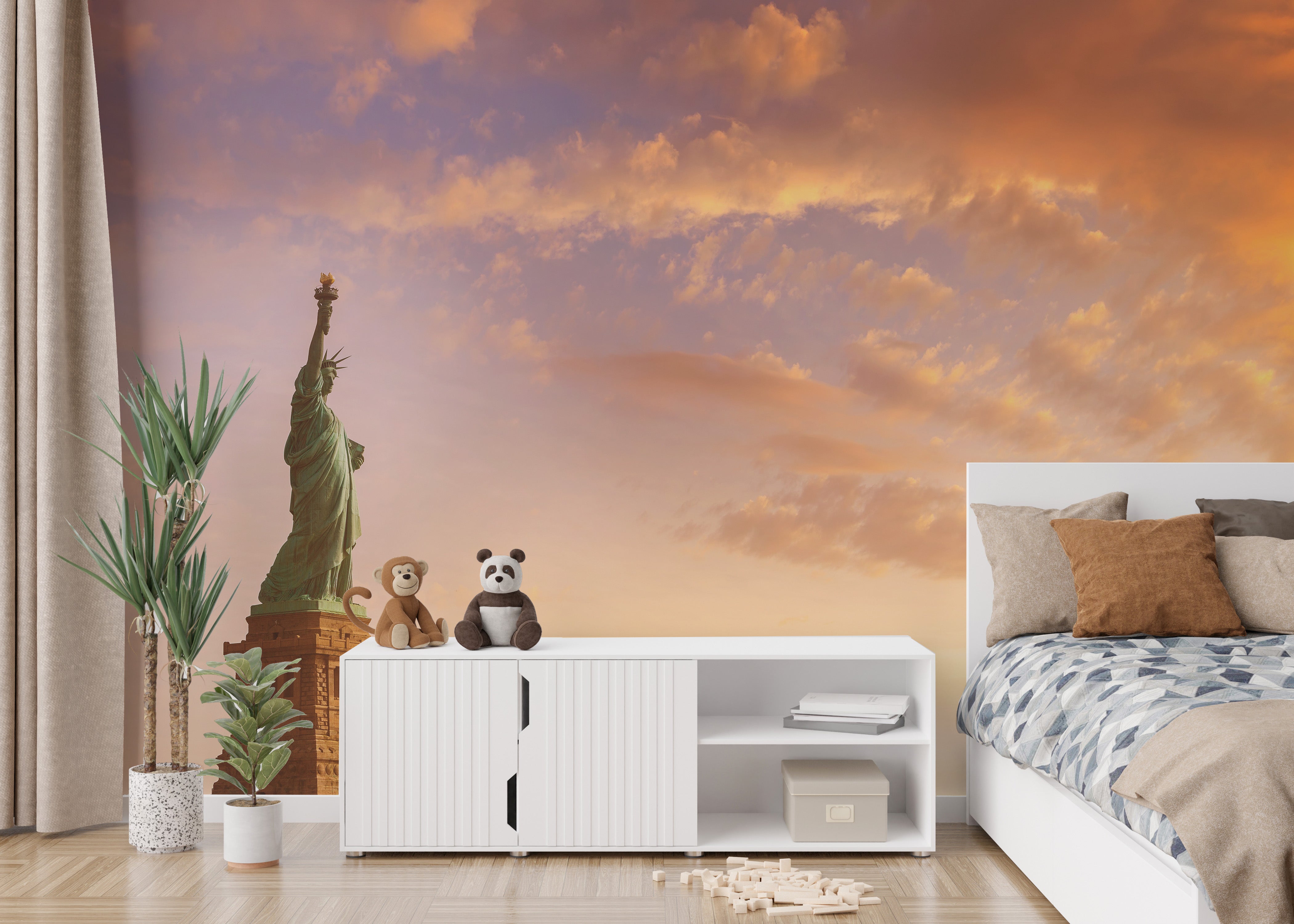 Experience the iconic beauty of New York City right from the comfort of your home with our Statue of Liberty New York Manhattan USA wallpaper mural. This captivating Statue of Liberty wallpaper for walls captures the majesty of Lady Liberty set against the stunning Manhattan skyline during a breathtaking sunset. Every detail is intricately designed to transport you to the heart of NYC, making it an ideal choice for those who want to relive the city's charm or dream of visiting it someday. The sunset view in New York City wallpaper not only enhances the aesthetic of any room but also serves as a conversation starter, celebrating one of the world's most renowned landmarks. Whether you want to give your space a modern urban touch or pay homage to the enduring symbol of freedom and democracy, this mural wallpaper is the perfect choice.