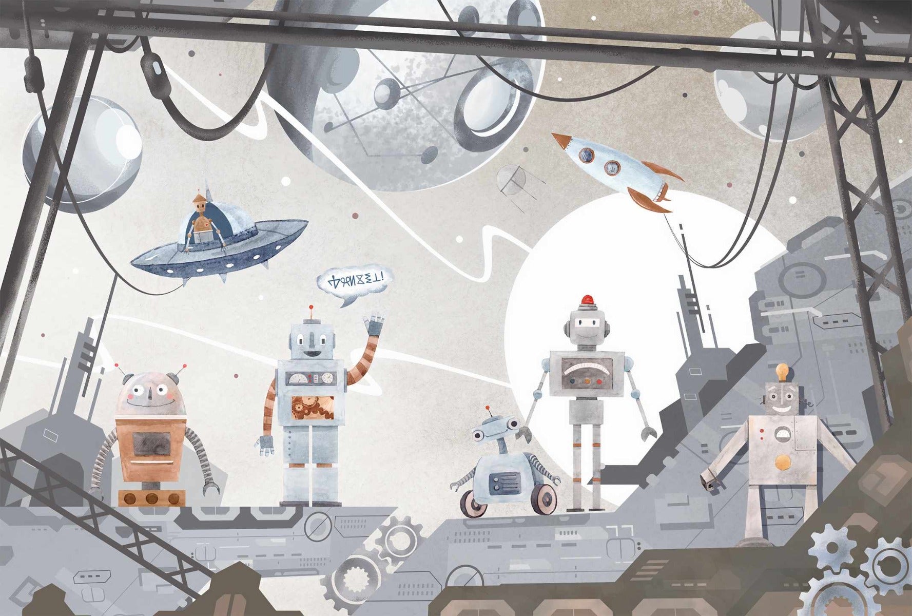 Unleash a universe of creativity and imagination in your child's room with our stellar bot expedition mural wallpaper. Crafted with precision and a sprinkle of intergalactic fun, this stellar bot expedition for kids room wallpaper is an awe-inspiring blend of innovative design and a dash of playful vibes, making it a perfect choice for a kid's room.