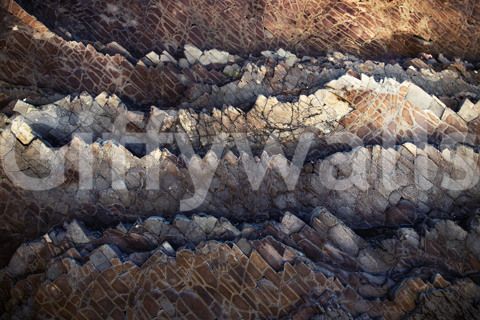 This unique wallpaper for walls highlights the beauty of stratified stone with its distinct layers and textures. The fractured appearance offers a rugged, yet captivating aesthetic. Shades of brown, tan, and grey create an organic feel, perfect for a living room or bedroom. This design brings depth to your spaces and complements interiors with its natural character.