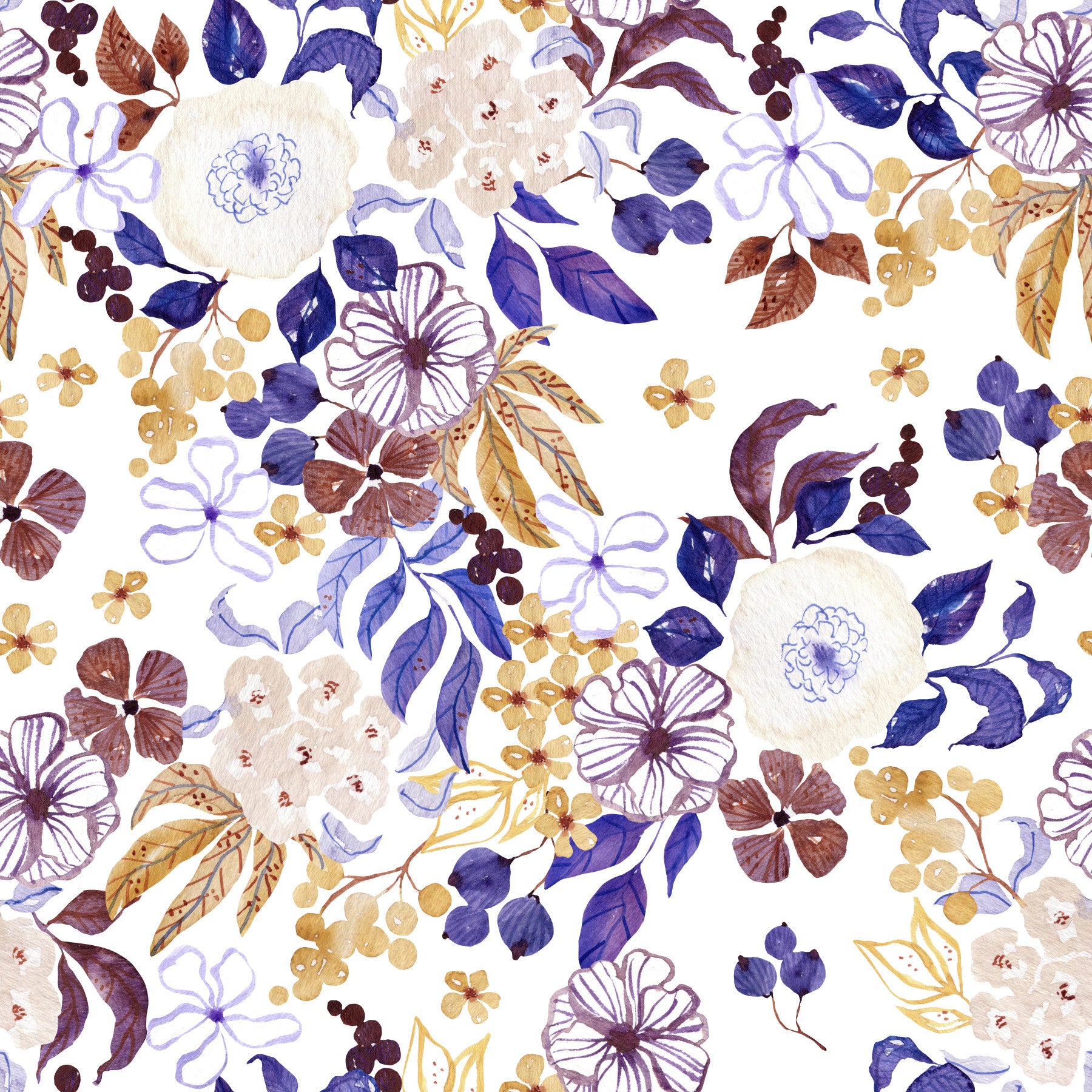 Escape into a world of understated elegance with this botanical-inspired wallpaper. The dreamy watercolor design features a delicate array of flowers and leaves in muted tones of purple, beige, and blue. The soft hues and intricate details create a tranquil and sophisticated atmosphere, perfect for adding a touch of whimsy to any room. The seamless pattern ensures a cohesive and visually stunning effect, while the soft palette encourages a sense of calm and relaxation. This wallpaper is ideal for creating a peaceful and inviting space.