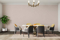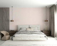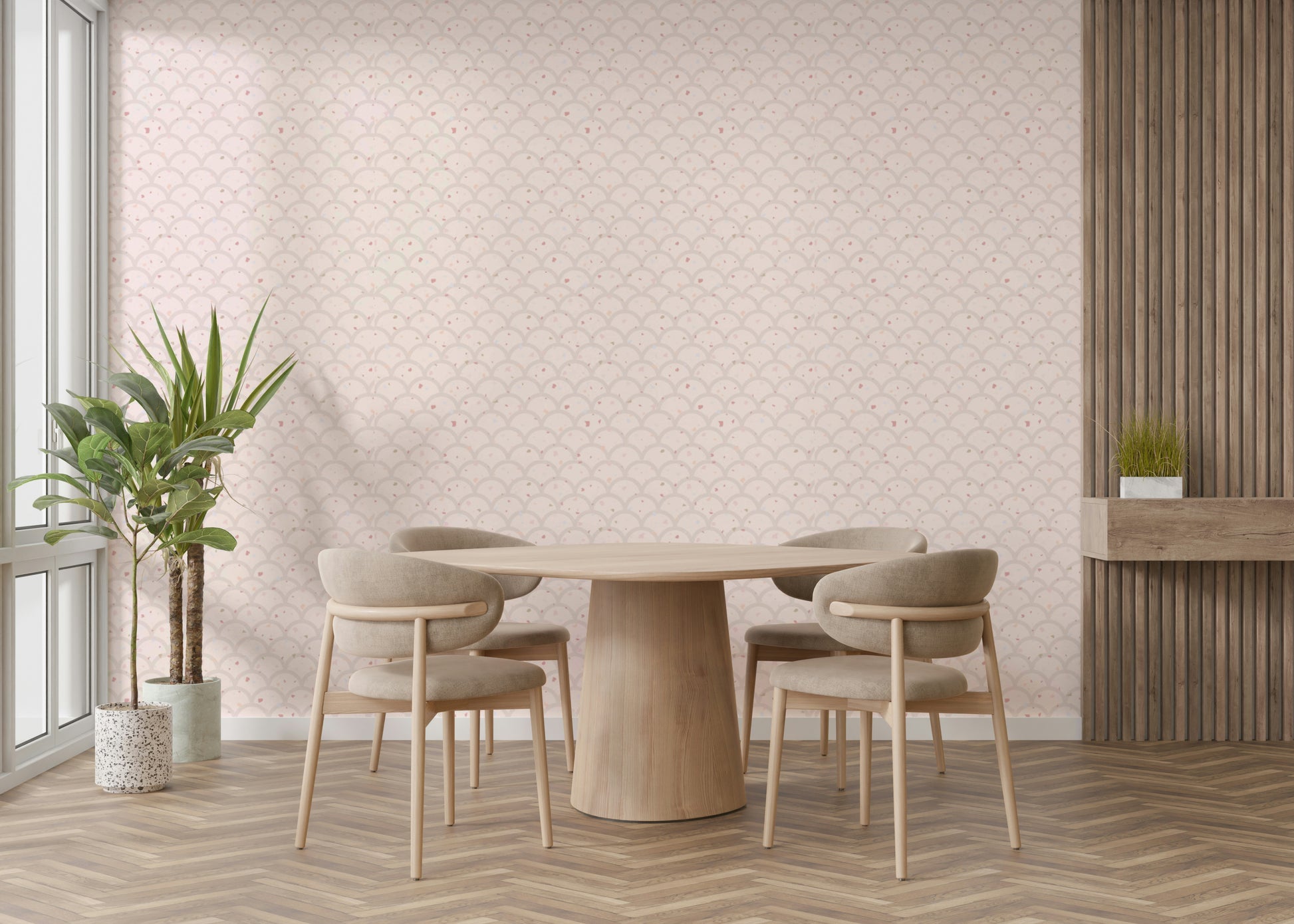 Elevate your interior space with this elegant wallpaper for walls that offers a gentle, repeating scallop pattern. Delicate speckles of blush pink, light blue, and tan decorate the design, adding subtle visual texture. The soft, muted tones create a calming effect, ideal for a peaceful ambiance in bedrooms, bathrooms, or nurseries. This pattern easily integrates into diverse room styles, offering a sophisticated yet understated backdrop that complements contemporary and transitional decors.