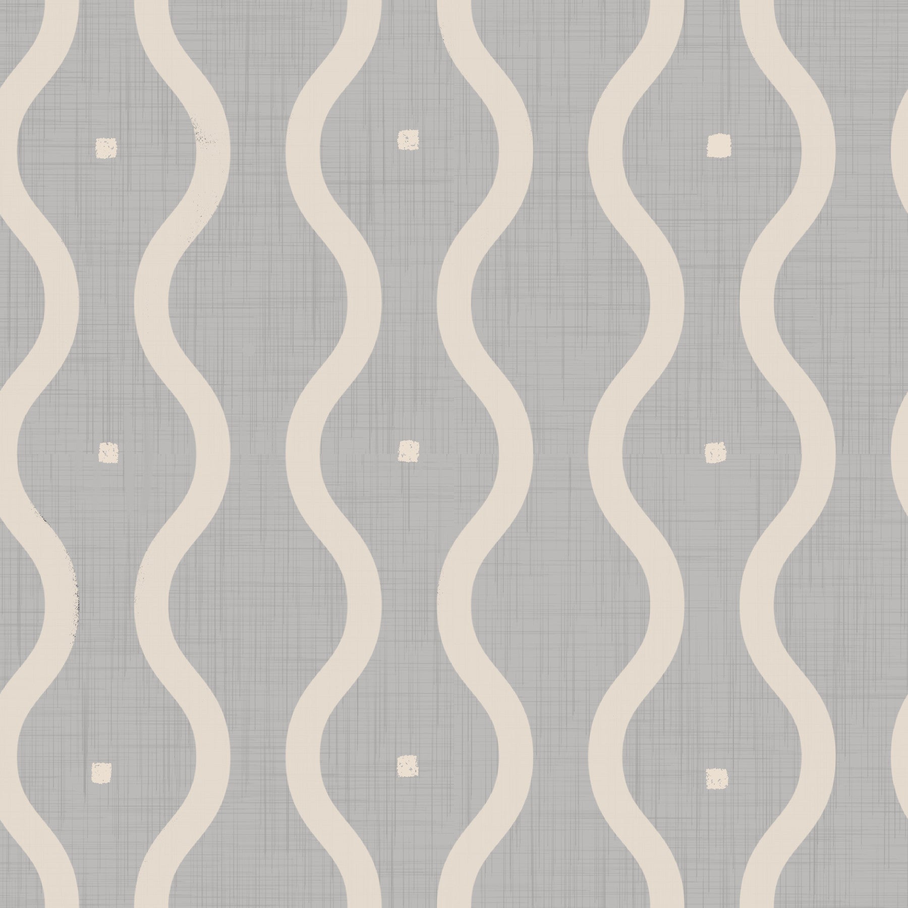 Subtle Serenity Grey wallpaper, flowing cream waves, linen texture.