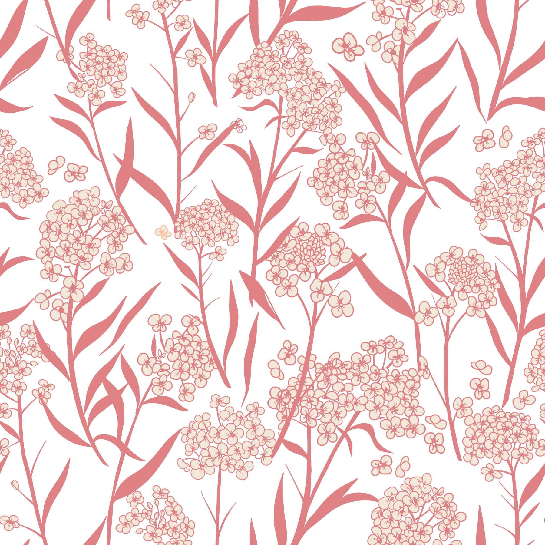 This Subtle Spring Bloom Wallpaper showcases a charming botanical print featuring delicate blush pink stems and subtly detailed off-white blossoms. Its elegant floral design adds a touch of sophistication without overwhelming the space. The soft pastel color palette and organic forms evoke the beauty of a spring bloom, creating a calming and peaceful atmosphere—perfect for a tranquil haven in your home. Ideal for those who love nature wallpaper or are inspired by cottagecore and romantic wallpaper designs, this spring-inspired wall decor fits beautifully in bedrooms, living rooms, or serene reading nooks. The peel and stick wallpaper application offers an easy, renter-friendly update. Plus, the seamless design ensures a cohesive, visually pleasing look that brings timeless charm to any room.