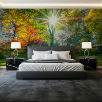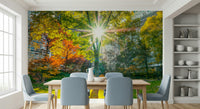 Sun Rays Through Trees Wall Mural