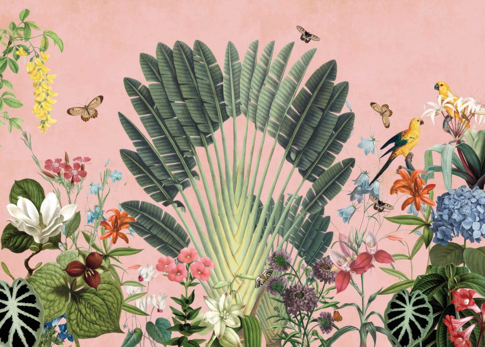 The sunbeam canopy wall mural offers a spectacular visual feast of flora and fauna, transforming any room into a vivid tableau of nature's beauty. This botanical wallpaper captures a serene yet vibrant garden scene, complete with an assortment of tropical leaves, fluttering butterflies, and exotic birds. Its design is carefully crafted to ensure each detail contributes to a realistic and engaging experience, making it perfect for those seeking to bring the tranquility of nature indoors. Beyond its aesthetic appeal, the mural acts as a focal point, creating a peaceful yet dynamic atmosphere that enhances any living space, be it a bedroom, living room, or study area.