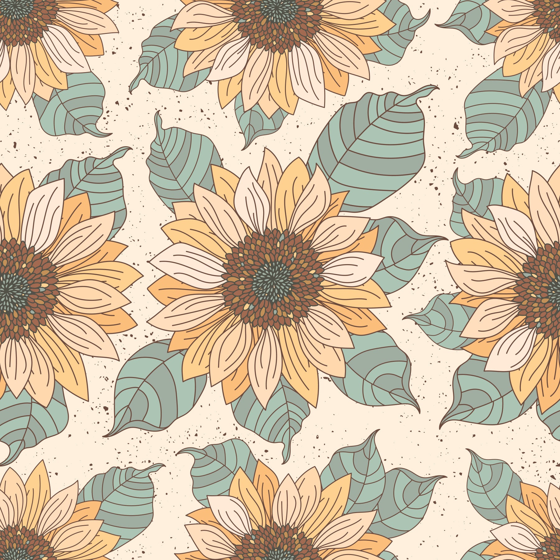 Brighten your home with this charming sunflower pattern. The hand-drawn floral design features sunflowers in shades of yellow and beige, accented by muted green leaves. The warm, inviting palette creates a cosy feel, making it ideal as wallpaper for walls in living rooms, bedrooms, or dining areas. The detailed linework and scattered speckles add a touch of rustic charm that complements modern farmhouse or vintage-inspired interiors beautifully.