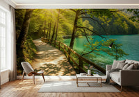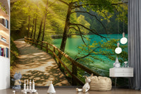 Sunlit Lakeside Path Wall Mural