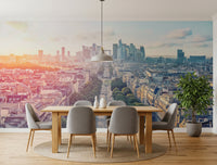 Breathe new life into your interior with this sunrise-kissed cityscape. This wallpaper for walls presents a unique perspective of Paris, blending the city's iconic architectural grandeur with a soft, ethereal light. The delicate gradients of pink, peach, and pale blue evoke a sense of calm and sophistication. Perfect for adding a touch of wanderlust to bedrooms, a dash of elegance to dining rooms, or a calming influence to a study. The detailed cityscape brings depth to the room and will become a captivating focal point.