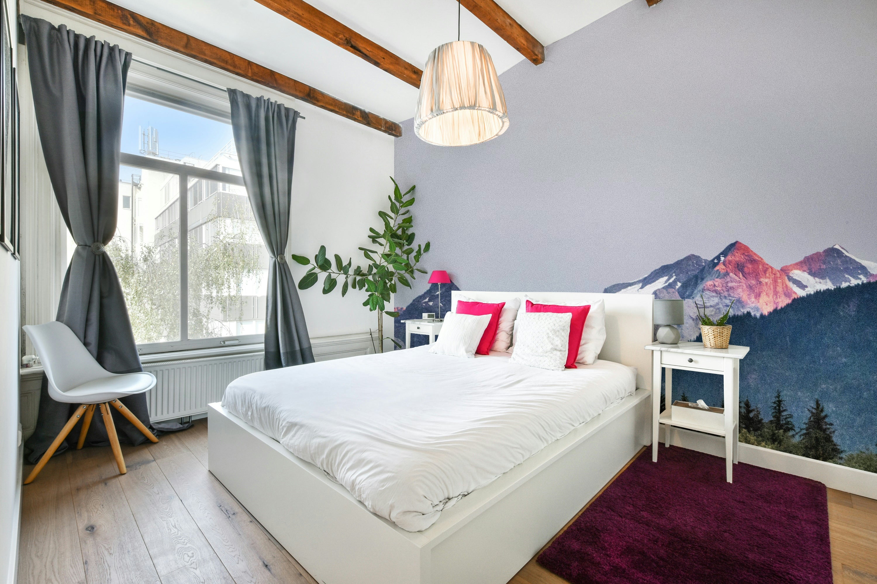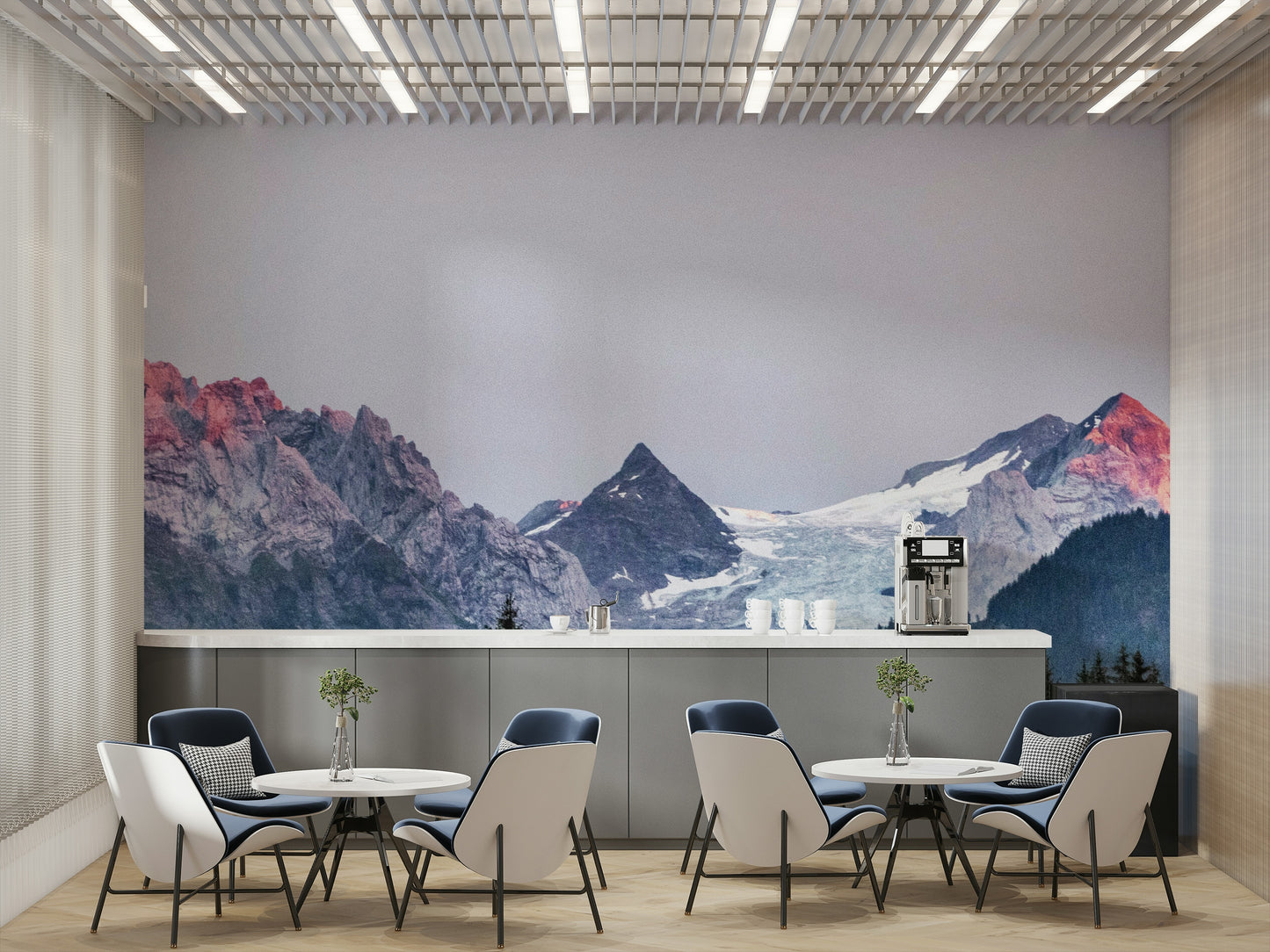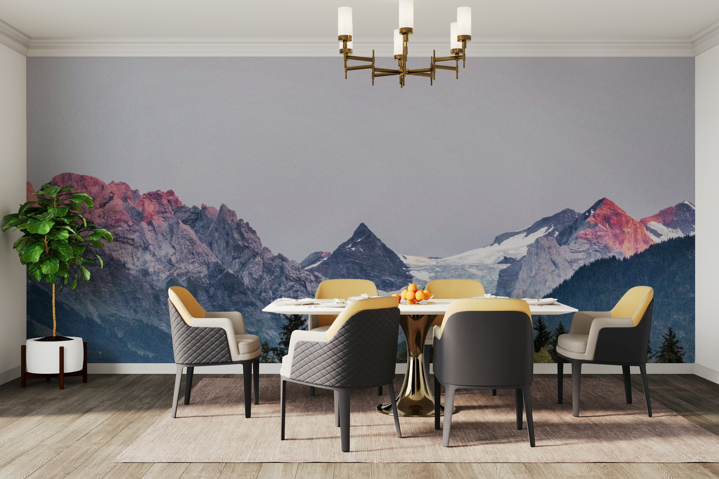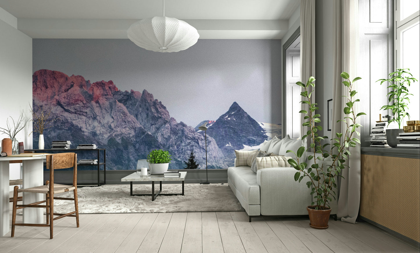 Capture the essence of a serene mountain landscape with this stunning wallpaper. Featuring a soft ombre effect of sunset colors over the majestic peaks, it's perfect for adding a touch of sophisticated nature to your living room or bedroom. The temporary adhesive makes it easy to apply and remove.