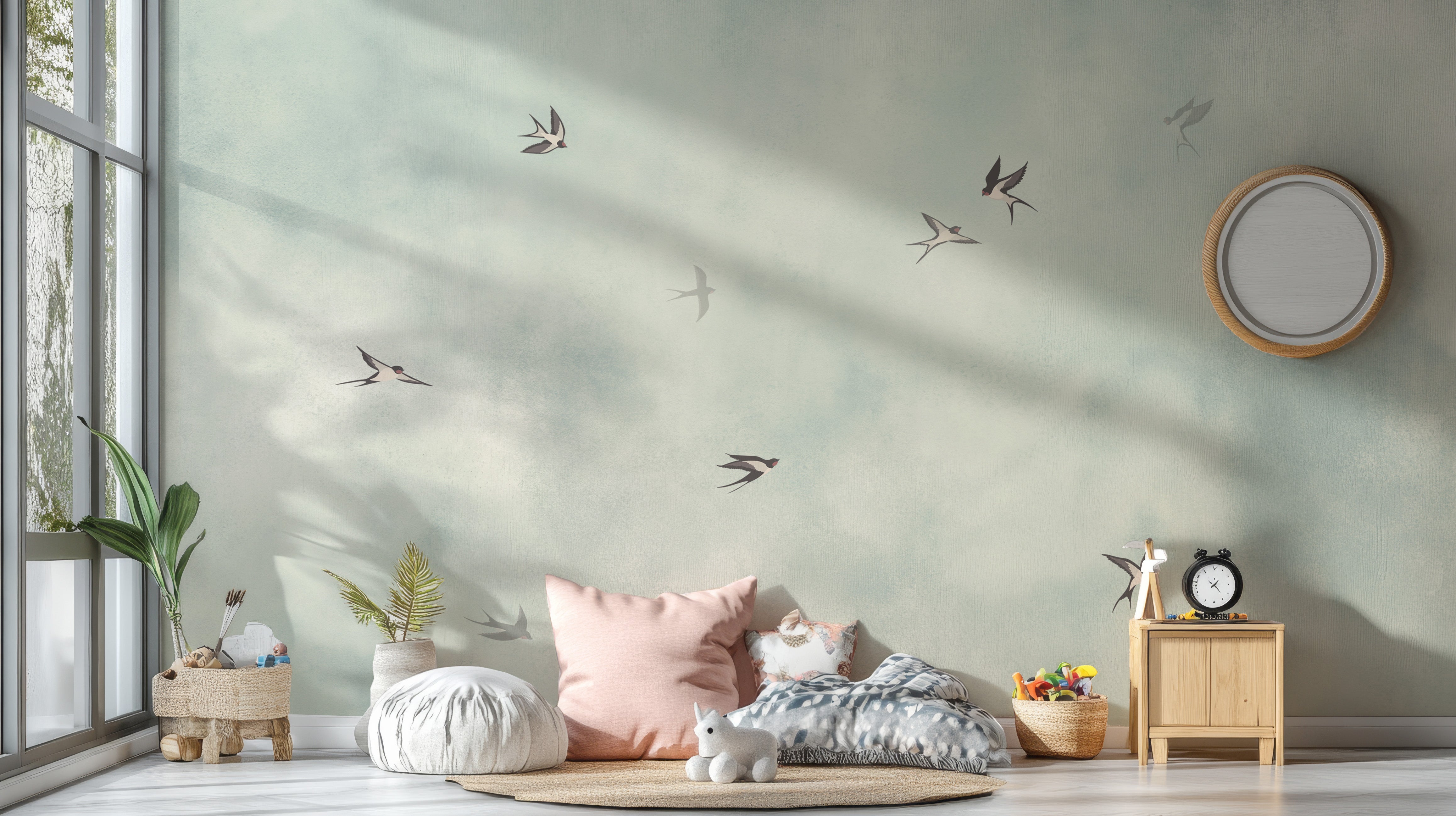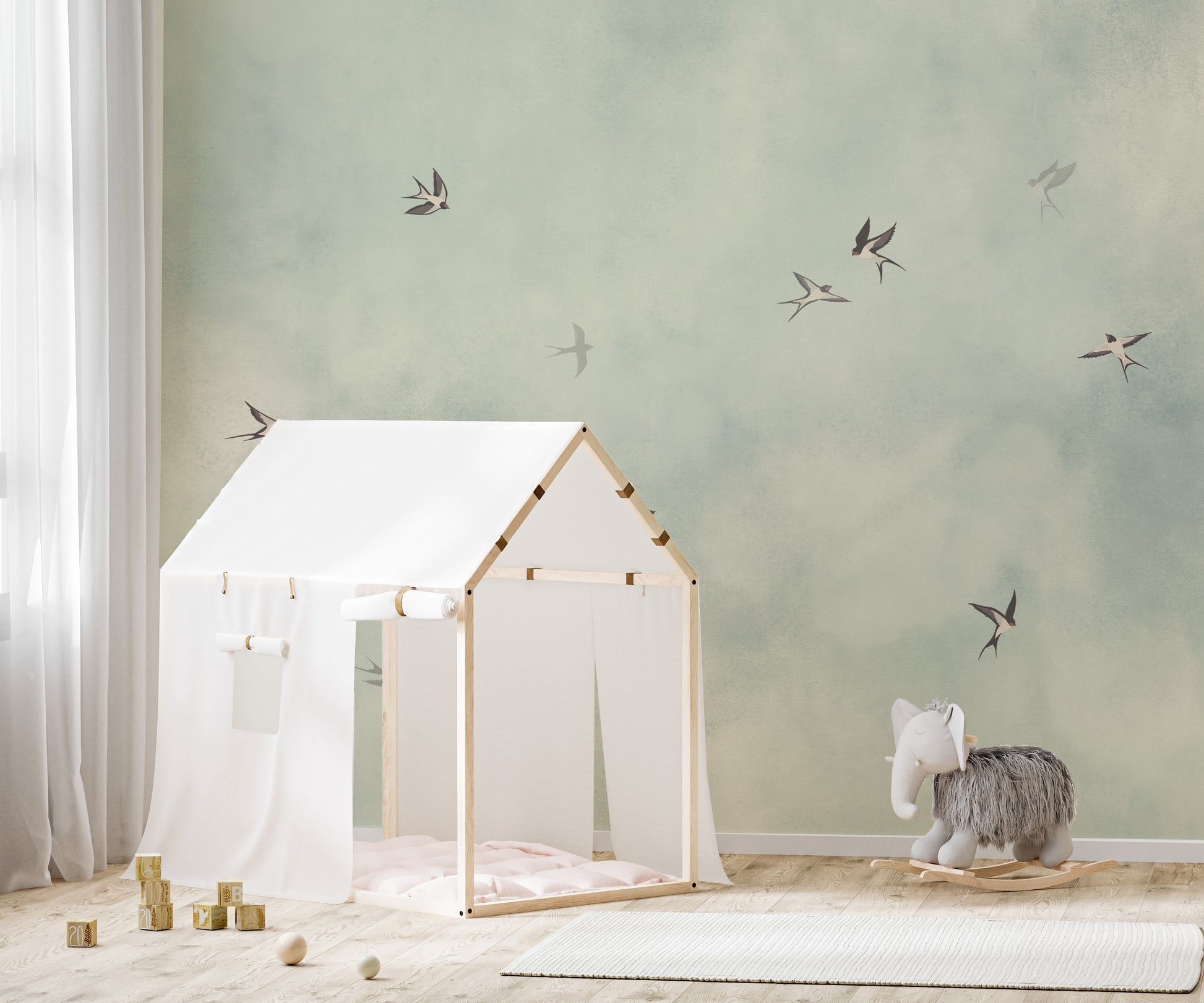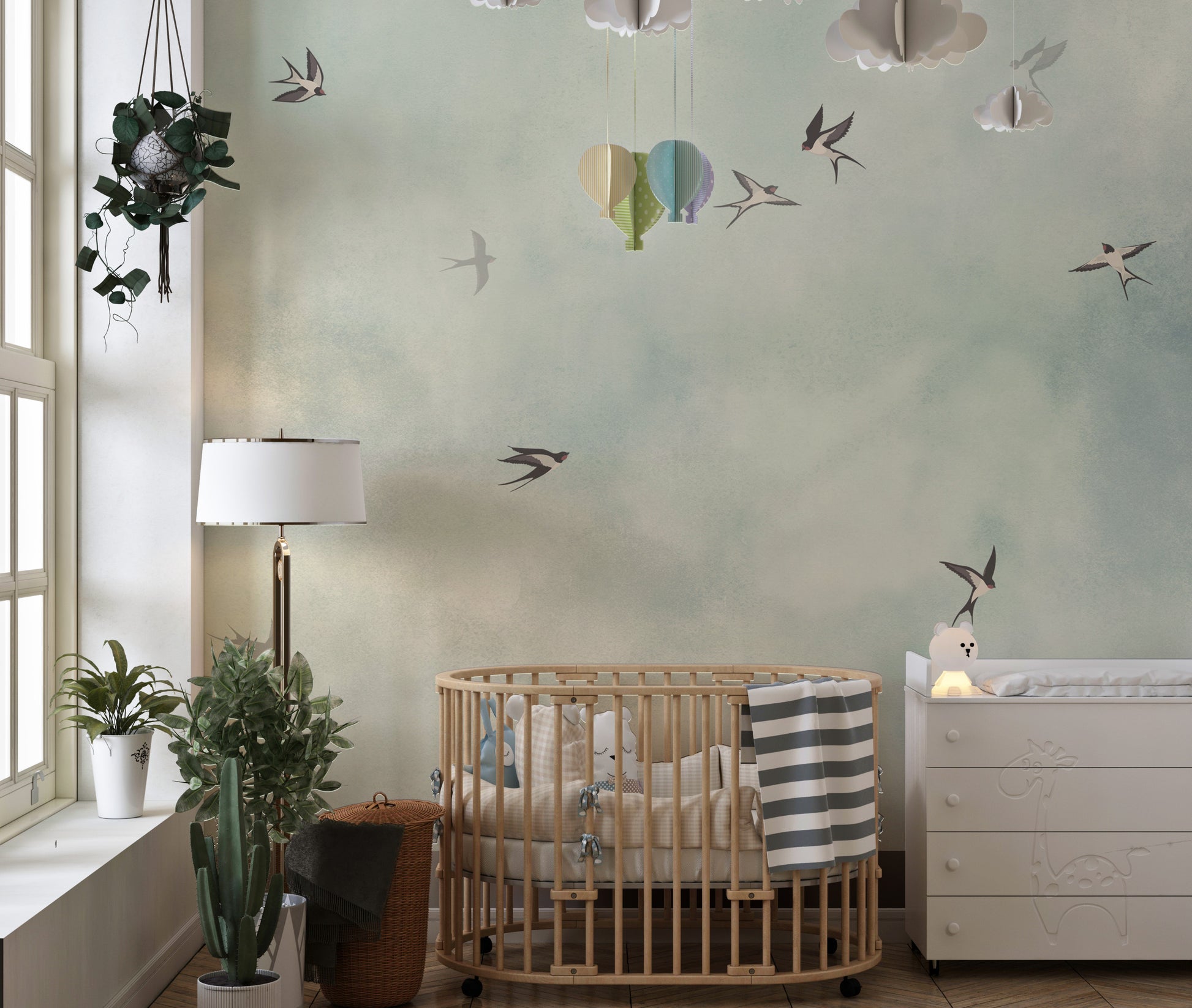 With every-mile stretch of open sky captured in the Swallow Dance Sky Wallpaper Mural, you can infuse harmony into your living space. This pattern features delicate swallows taking graceful flights on a beautiful soft background, capturing the embodiment freedom and peace. The mural is the best choice for adding a gentle character to any living space and is complementary to both modern and traditional interiors. Made for tranquil bedrooms, cozy living rooms, and classy offices, it brings an elegant touch to your walls-inviting nature-inspired beauty. With the brilliance of color and easy application afforded by finer-grade materials, this wallpaper mural will put a soothing ambiance into your interiors. Let your walls narrate graceful flight.