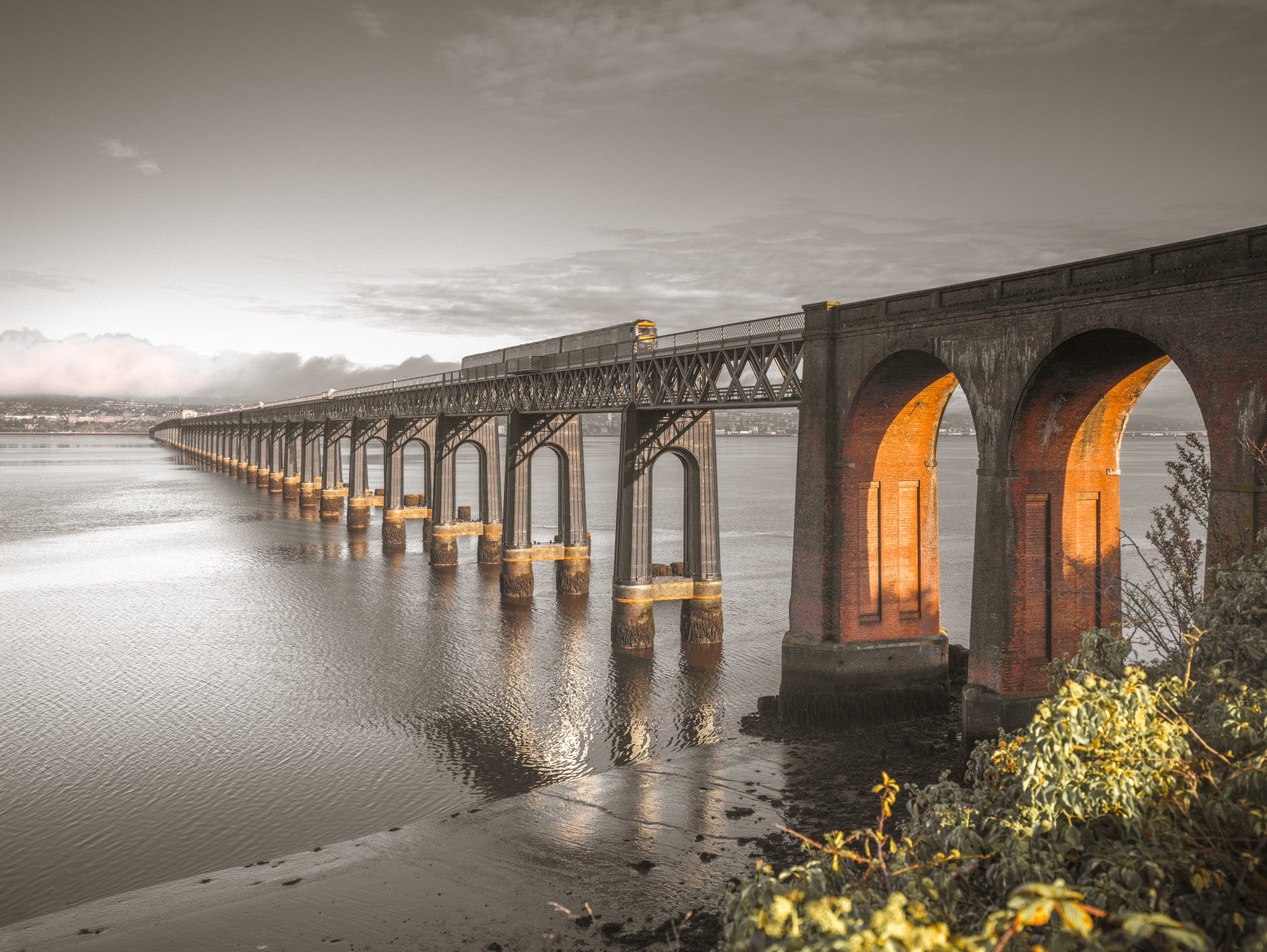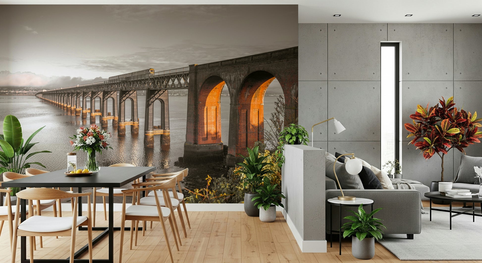 Immerse your space in the industrial grandeur of the Tay Rail Bridge. This artwork captures the sheer scale and architectural prowess of this iconic structure, rendered in a warm, sepia-toned palette that evokes a sense of timeless strength. The bridge's imposing brick arches, stretching across the tranquil waters, create a compelling visual narrative of engineering achievement and enduring legacy. Notice the intricate detailing of the ironwork and the subtle play of light upon the water, transforming a functional structure into an objet d'art. Perfect for adding a touch of historical gravitas and architectural intrigue to any room, this piece provides a dramatic focal point that speaks volumes. This image is a testament to human ingenuity and a beautiful addition to create depth and interest to any wall. Let this bridge become the cornerstone of your décor.