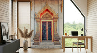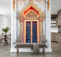 Transform your living space with this captivating wallpaper for walls, featuring an ornate temple gate. The intricate carvings and rich gold details against a marble backdrop infuse any room with a sense of history and culture. The contrasting black figures offer a dramatic visual that commands attention. Consider it for a foyer, living room, or study to create a sophisticated atmosphere. This wallpaper adds depth and dimension, turning a plain wall into a captivating feature. It complements both modern and traditional interiors.