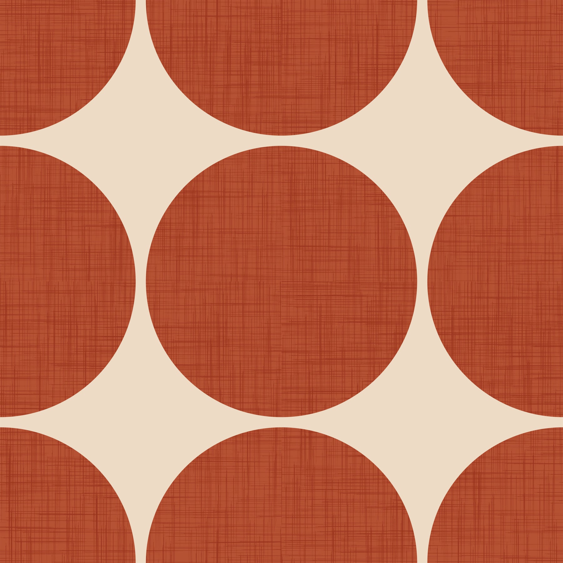 Warm neutral wallpaper featuring oversized terracotta round shapes arranged in rows and columns